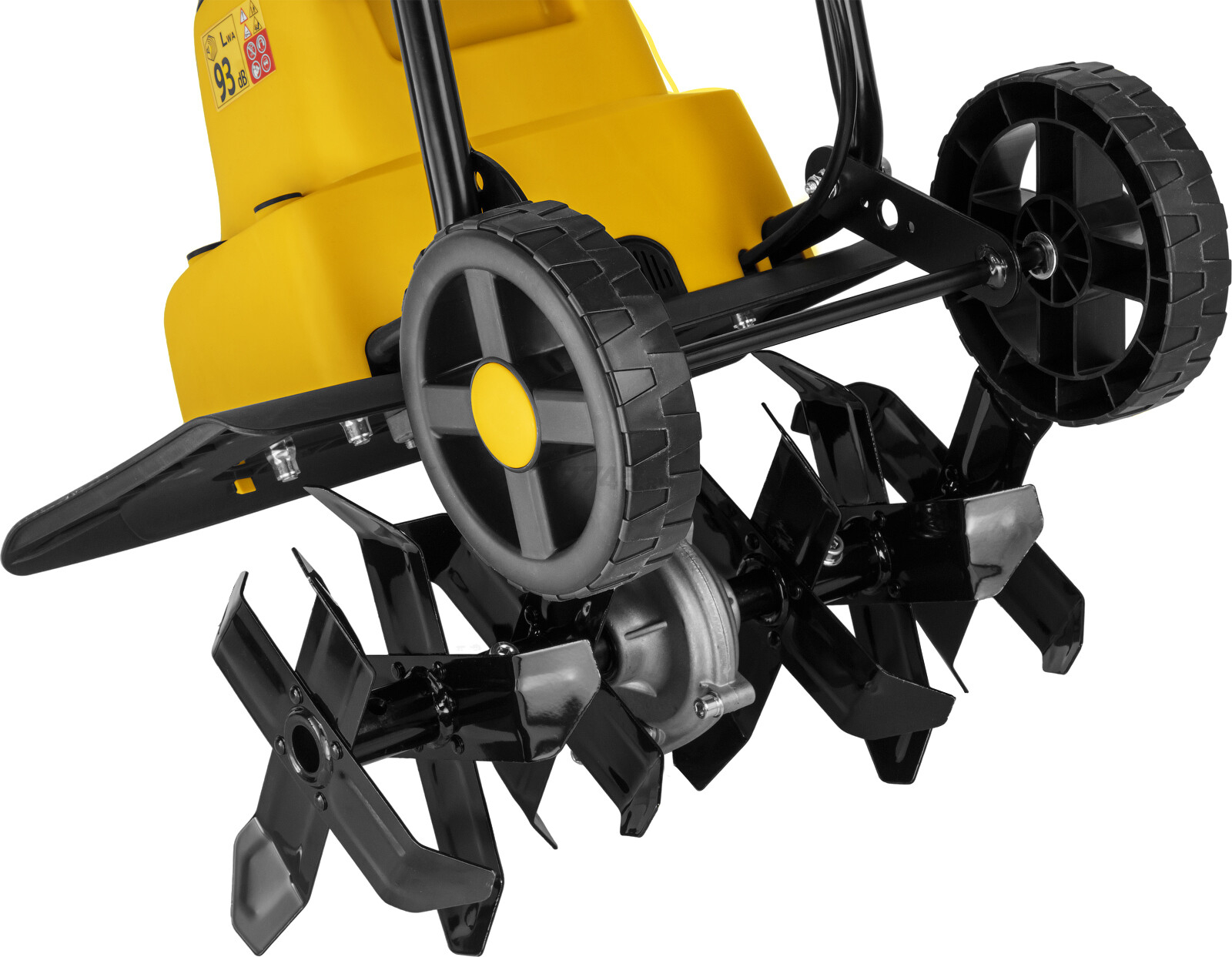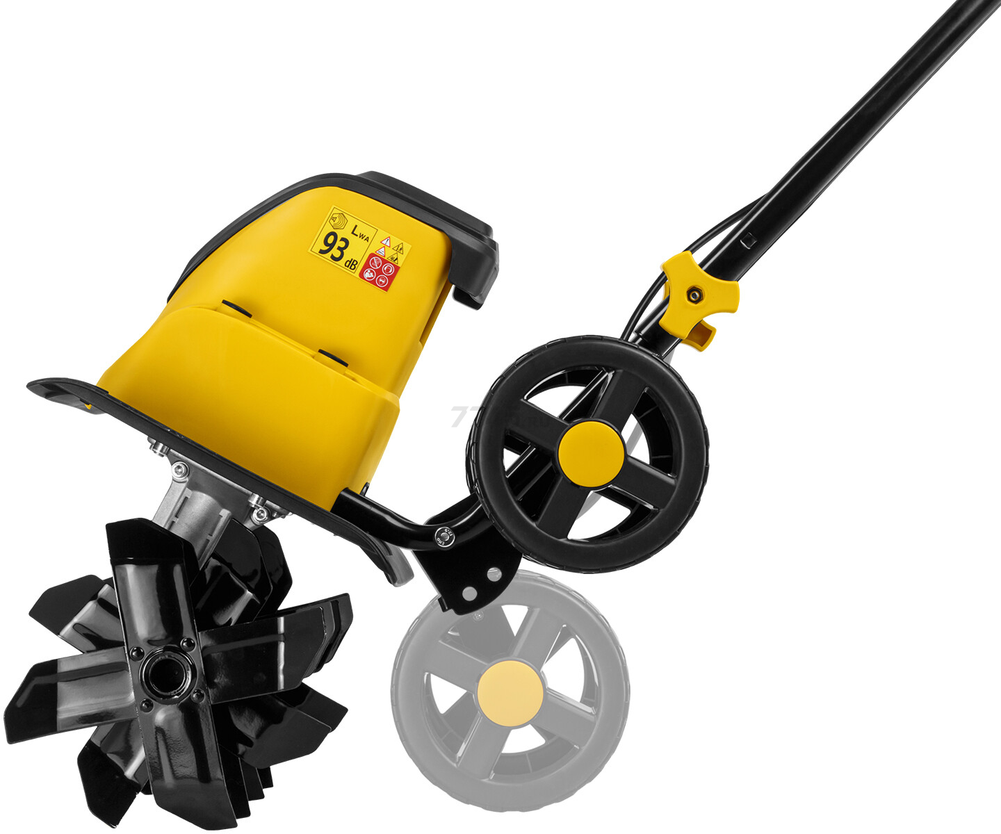 Задние колеса с кронштейном облегчают перемещение агрегата культиватора. Колеса могут быть зафиксированы в транспортировочном положении либо в рабочем;