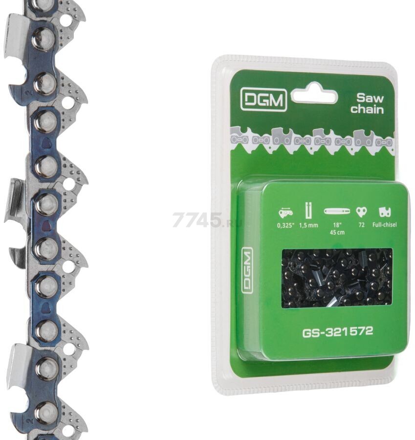 Информация о товаре Цепь 45 см 18" 0,325" 1.5 мм 72 звена DGM (GS-321572)