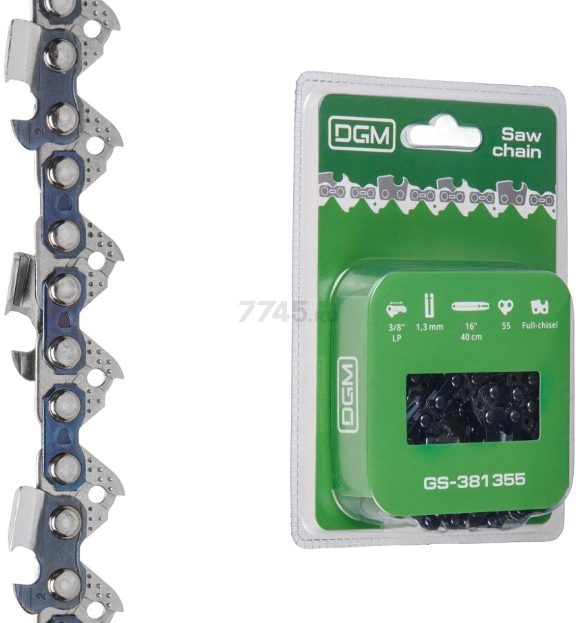 Информация о товаре Цепь 40 см 16" 3/8" LP 1.3 мм 55 звеньев DGM (GS-381355)
