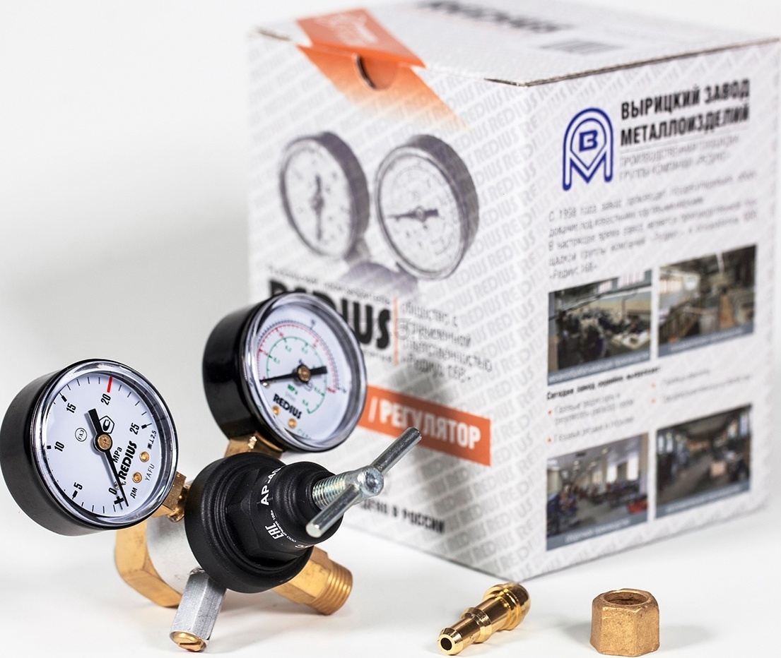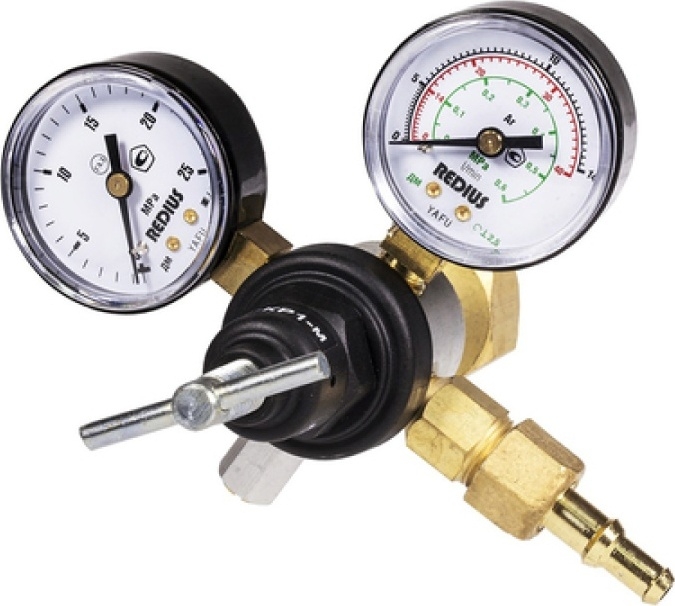 Редуктор аргоновый РЕДИУС АР-40-КР1-м (05501) одноступенчатый, предназначен для понижения и регулирования давления аргона, поступающего из баллона, и автоматического поддержания постоянного рабочего расхода газа на выходе регулятора в ходе проведения работ.
