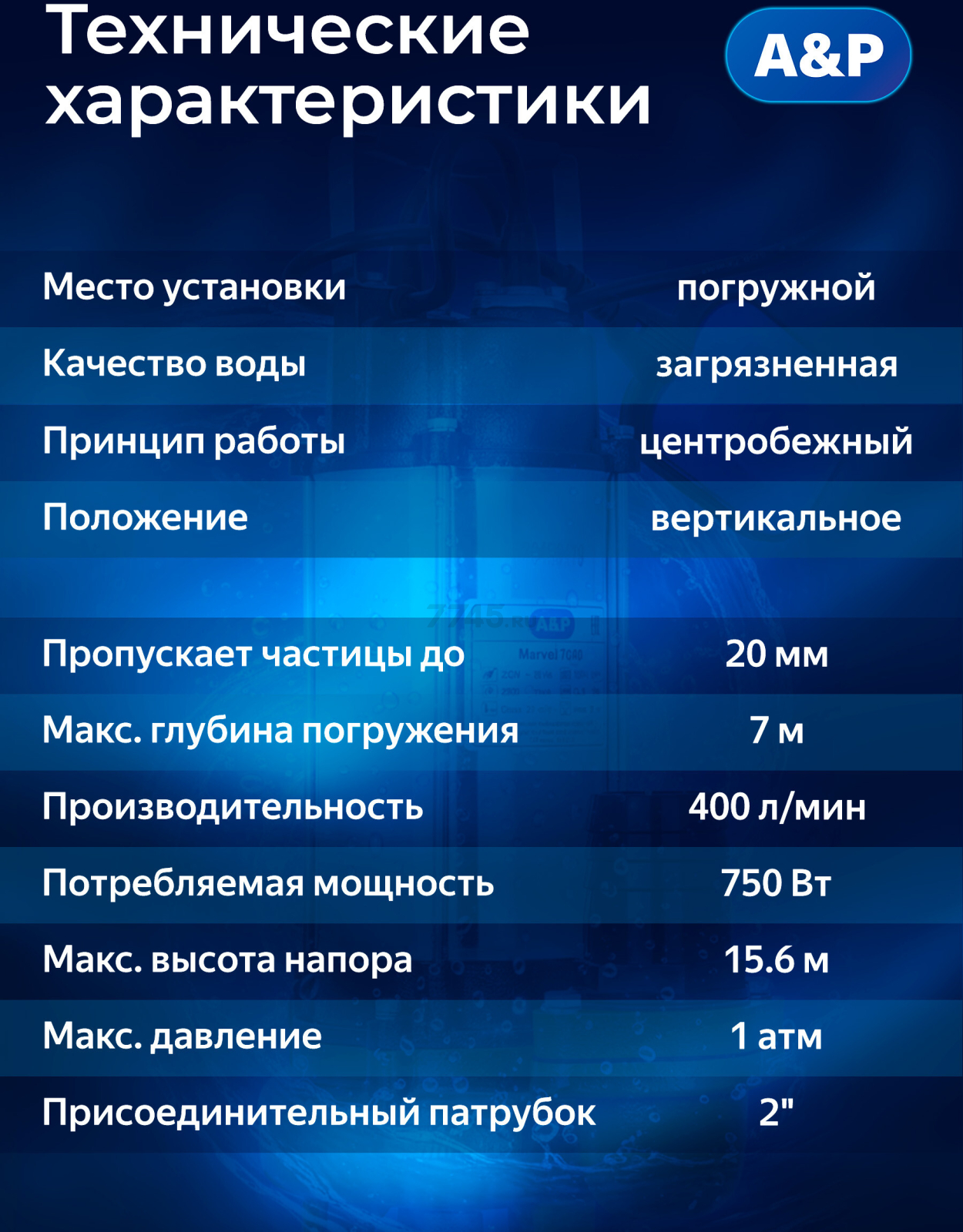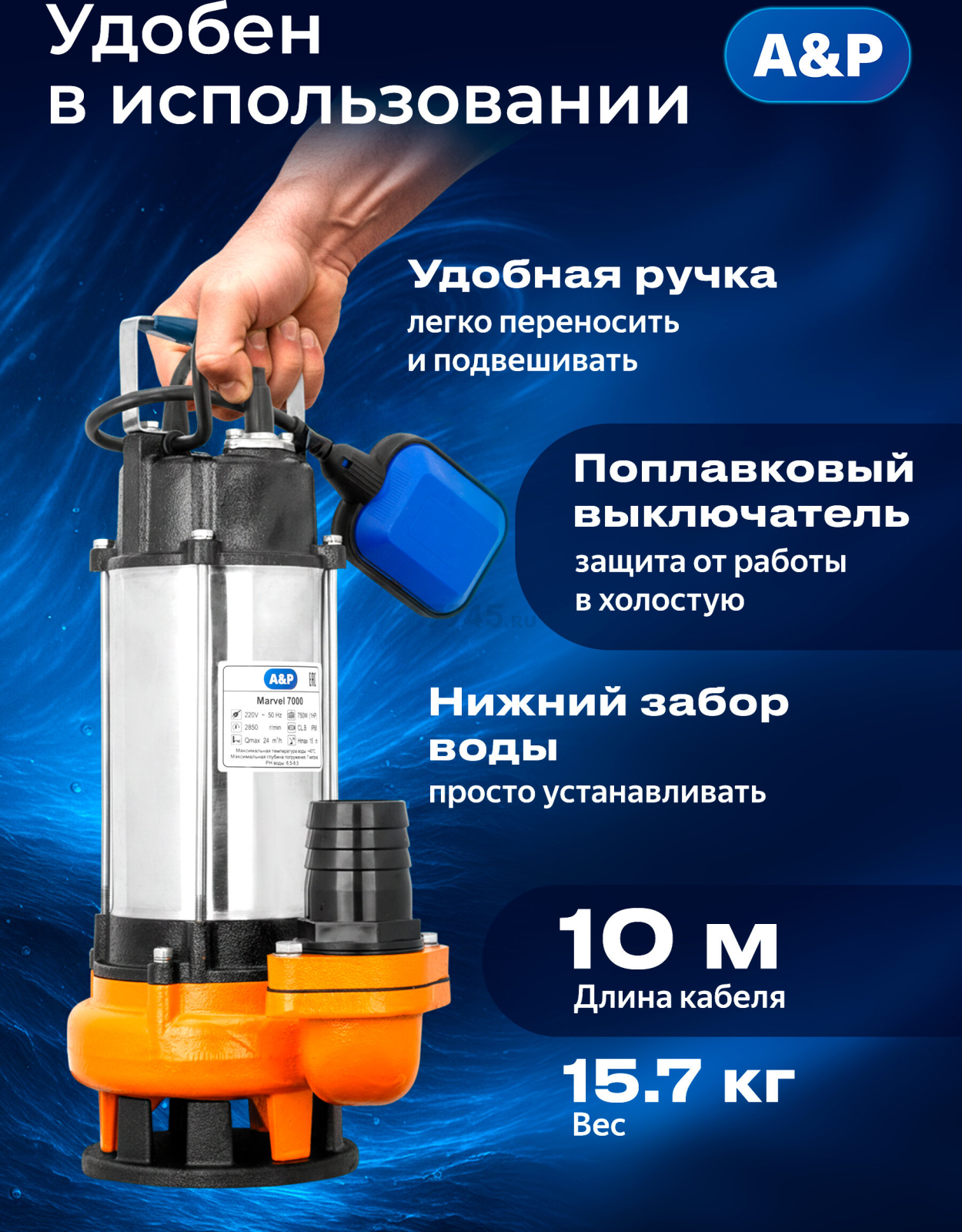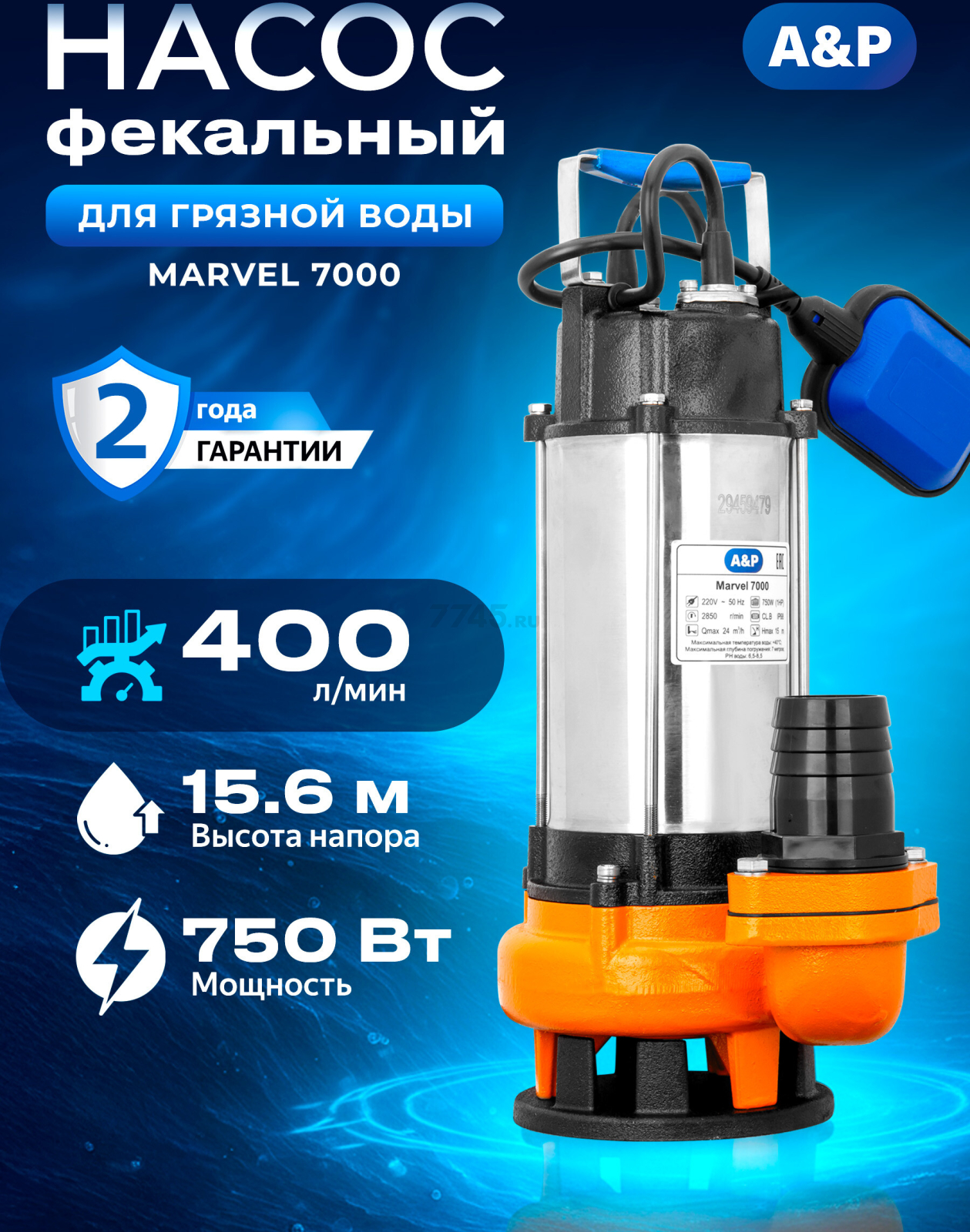 Информация о товаре Насос фекальный A&P Marvel 7000 (AP02A01)