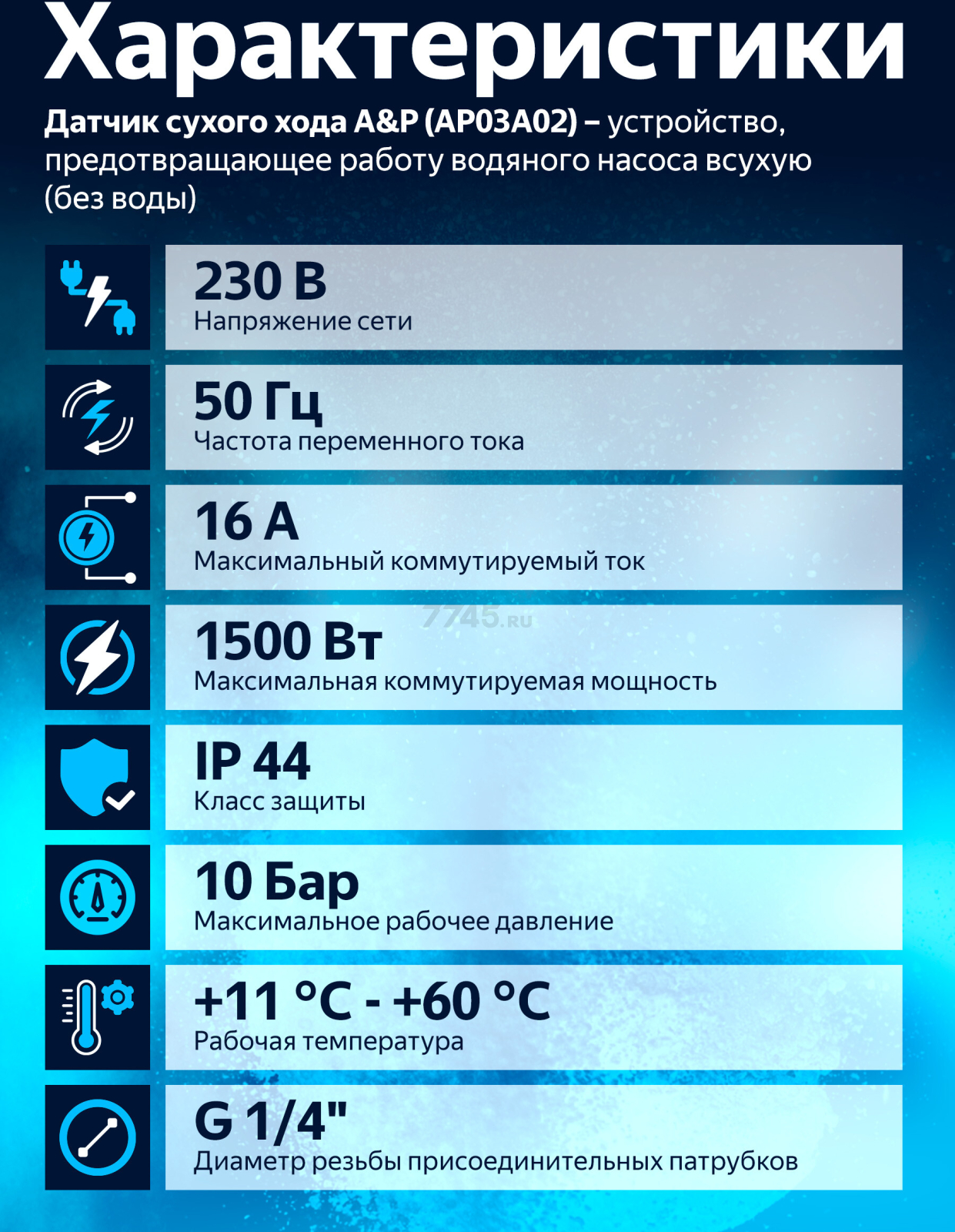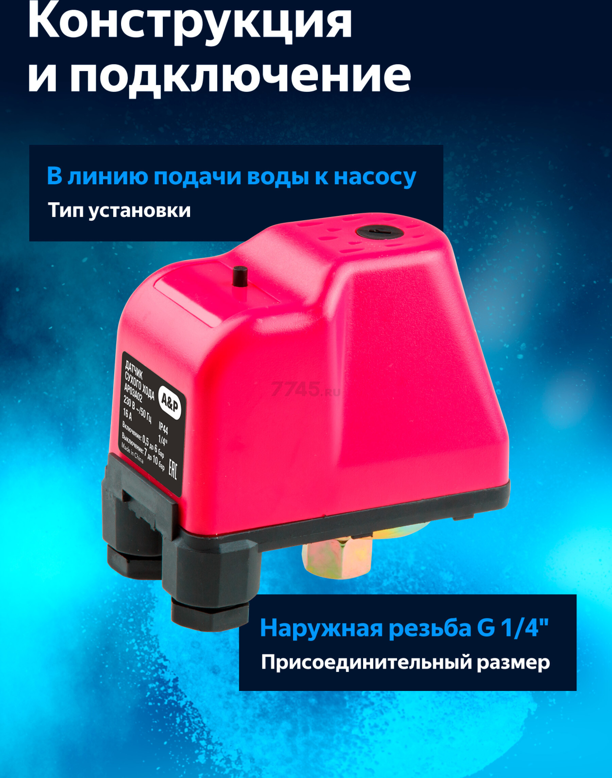 Датчик сухого хода A&P (AP03A02) - устройство, предотвращающее работу водяного насоса всухую (без воды).