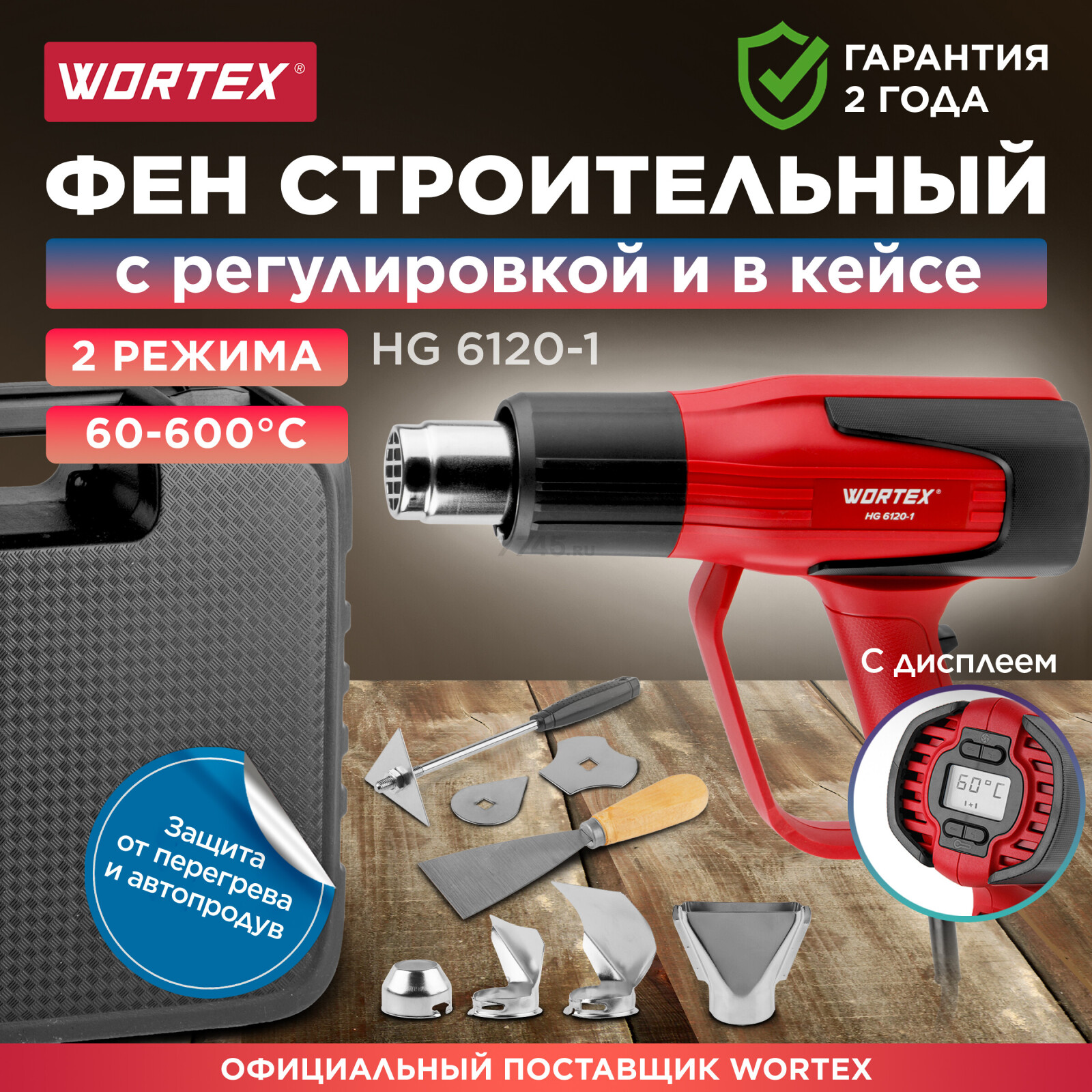 Информация о товаре Фен строительный (термовоздуходувка) WORTEX HG 6120-1 (0334324)