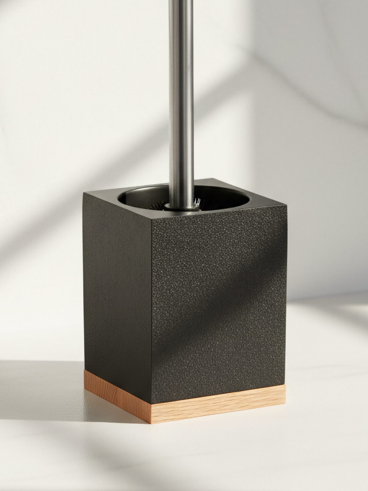 Ершик для унитаза PERFECTO LINEA Wood Bliss черный (35-720104) имеет необычный дизайн, созданный с помощью композитного материала: полирезина под натуральный камень. Благодаря такой структуре изделие имеет низкую теплопроводность, приятное на ощупь, а также устойчиво к влаге и повышенным температурам.