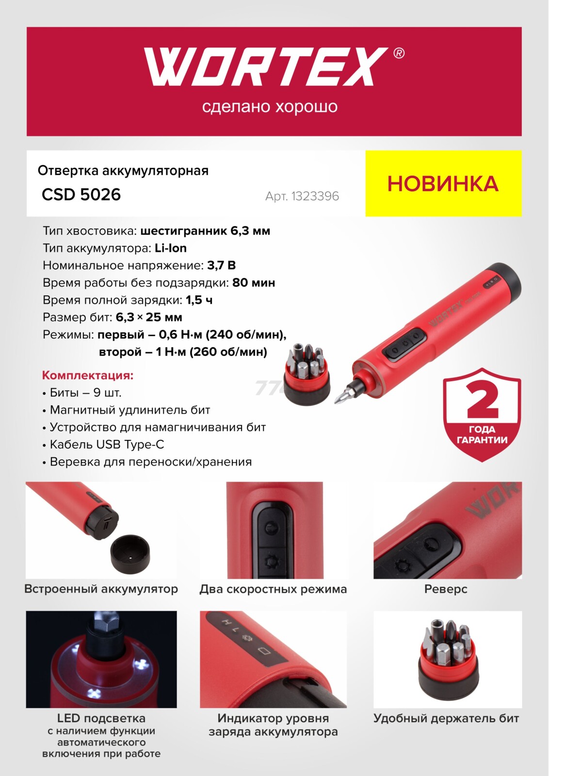 Информация о товаре Отвертка аккумуляторная WORTEX CSD 5026 (1323396)
