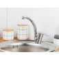 Смеситель для кухни A-FIVE Crocus хром (А5-0123) - классическая модель однозахватного смесителя с поворотным изливом идеально впишется в дизайн вашей кухни. Смеситель изготовлен из высокопрочной латуни марки HPb59-1 методом литья в песчаную форму, которая обеспечивает надежность и стабильность работы смесителя в течение длительного времени. Имеет качественное хромированное покрытие, которое придает ему привлекательный внешний вид и защищает от коррозии. Предназначен для вертикального монтажа на мойке. Смеситель оснащен надежным керамическим картриджем D40-A, который обеспечивает плавное и легкое регулирование потока воды, а углы поворота рукояток (вертикальный — 25°, горизонтальный — 50°) позволяют настроить комфортную температуру и ее напор. Картридж имеет долгий срок службы и минимальное трение. Аэратор обогащает поток воды кислородом, создавая мягкую и комфортную струю без брызг. Смеситель сочетает в себе стильный дизайн и удобство использования, обеспечивая надежность и функциональность на протяжении длительного времени.