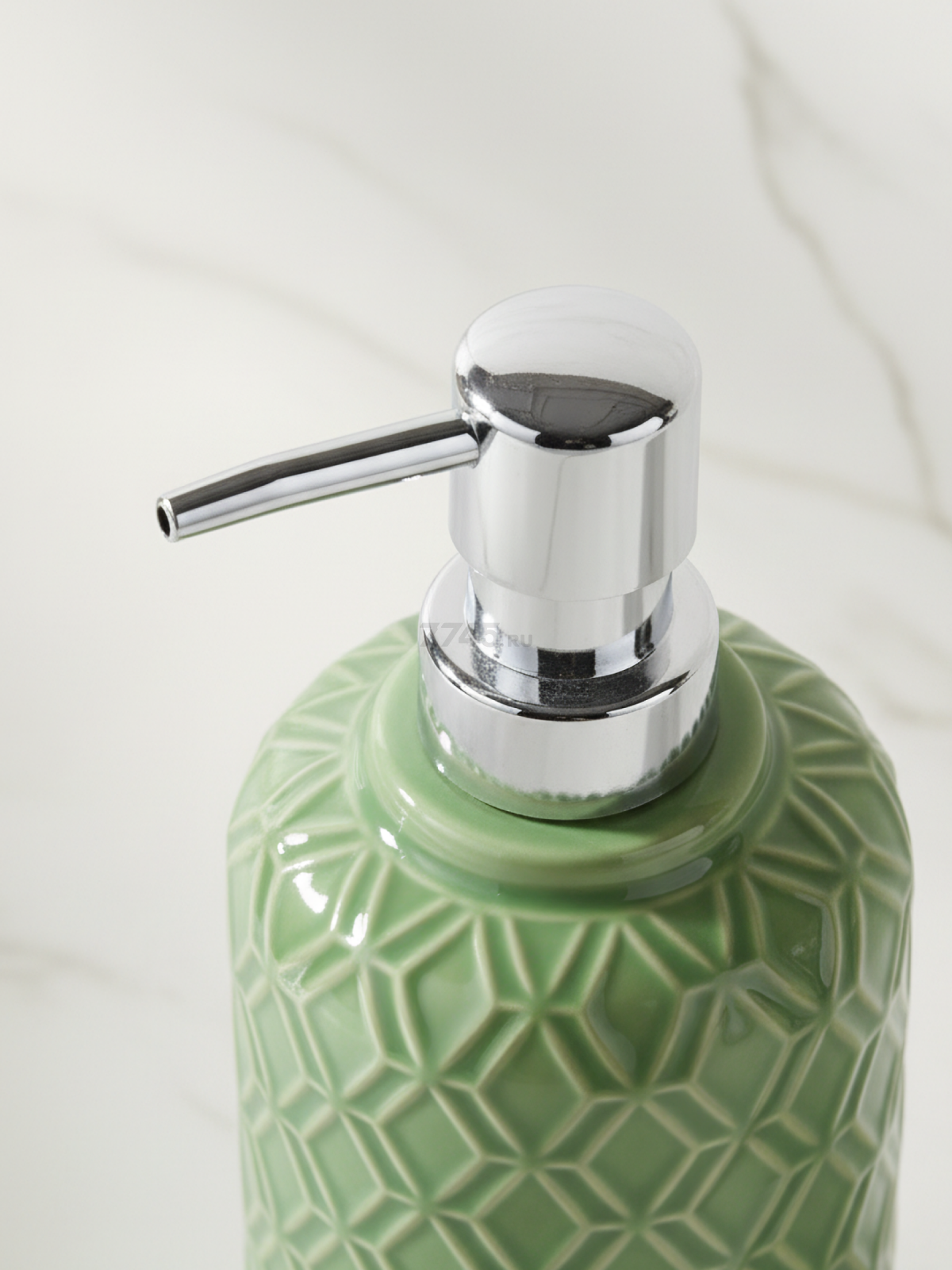 Дозатор для жидкого мыла PERFECTO LINEA Oasis зеленый (35-757001) выполнен в изысканном дизайне и отделке из керамики, что придает элегантный и стильный внешний вид, который прекрасно впишется в любой интерьер ванной комнаты. Керамический материал обеспечивает прочность и долговечность дозатора, что гарантирует его длительное использование без повреждений или износа. Аксессуар для ванной оснащен удобным механизмом для выдачи жидкого мыла, который позволяет дозировать нужное количество с легкостью и точностью. Керамическая поверхность диспенсера гладкая и не впитывает грязь, что облегчает его чистку и поддержание гигиены. Объем дозатора составляет 420 мл.