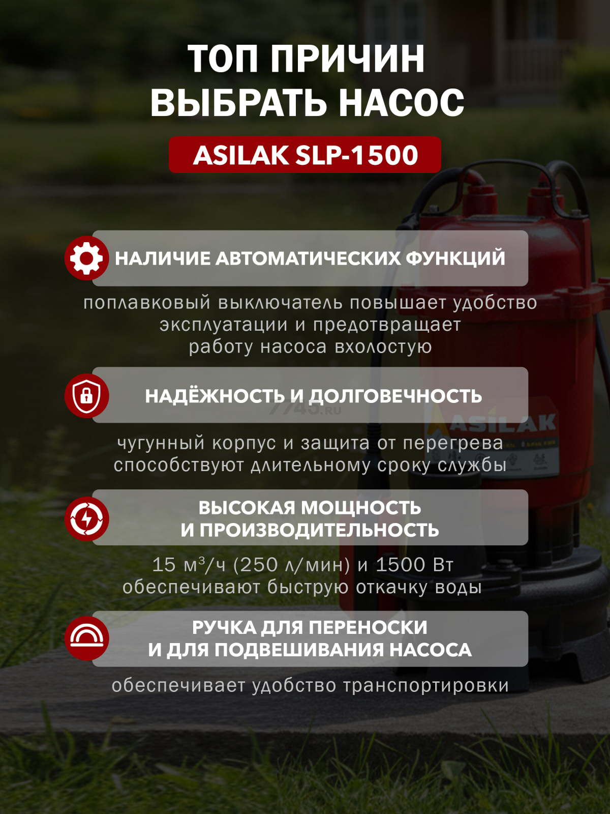 Описание товара Насос дренажный ASILAK SLP-1500 (AS4410-1)