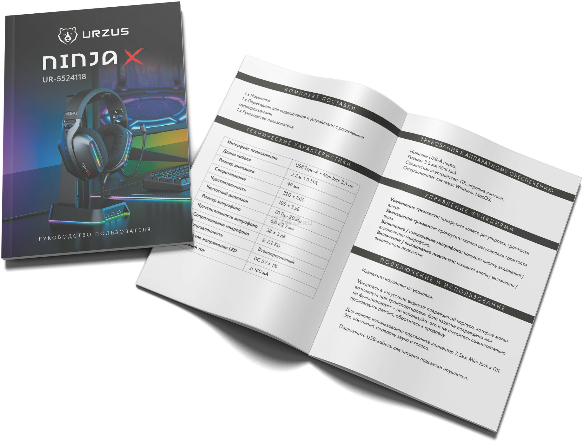 Информация о товаре Наушники-гарнитура игровые URZUS Ninja X UR-5524118