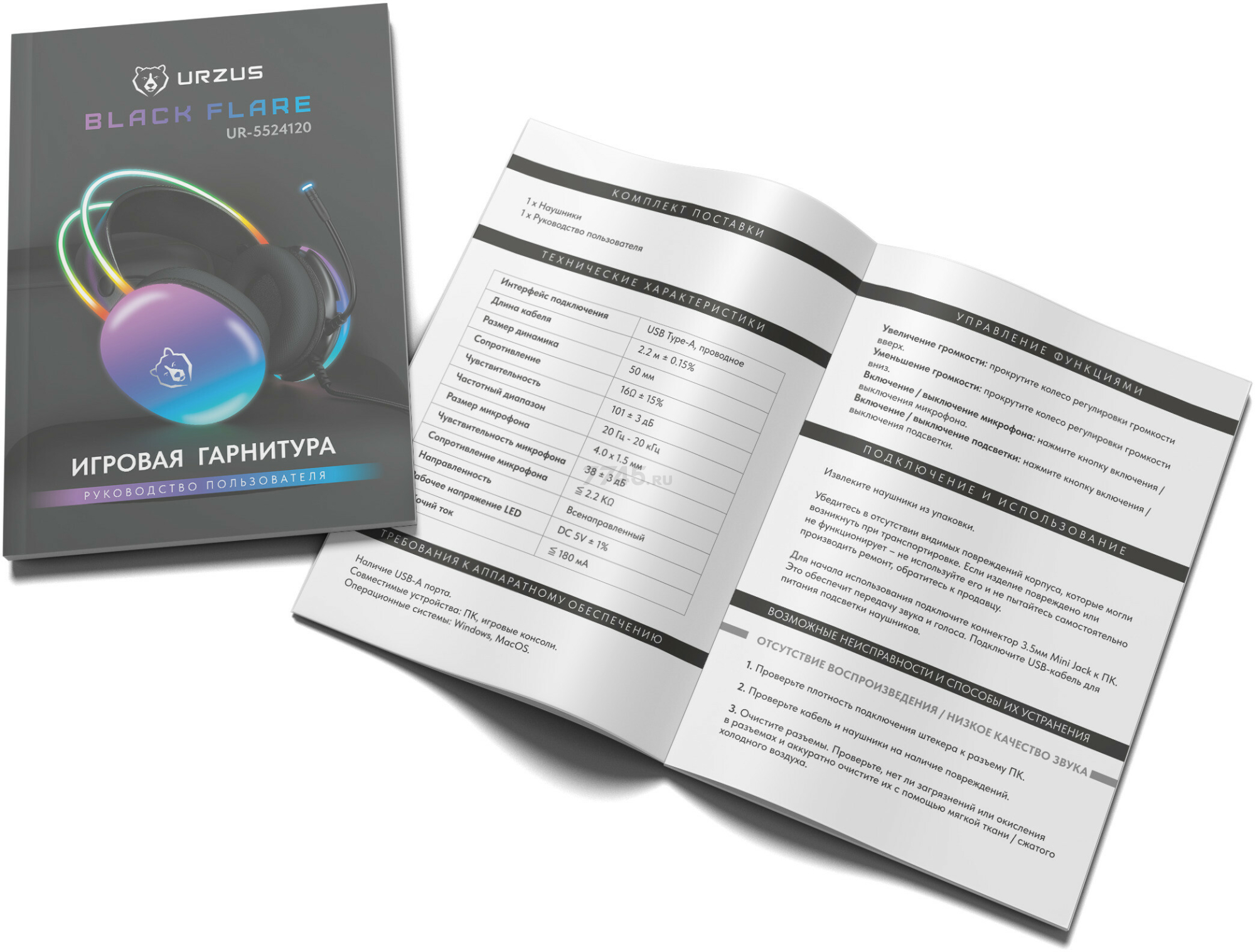 Описание товара Наушники-гарнитура игровые URZUS Black Flare UR-5524120