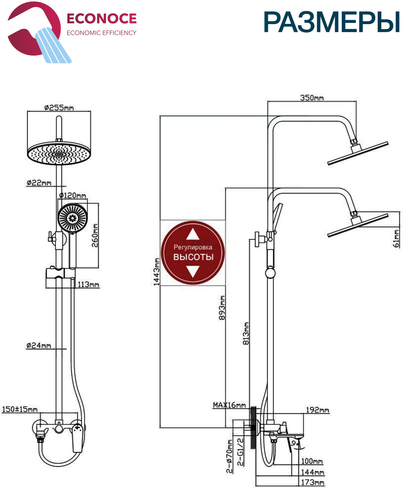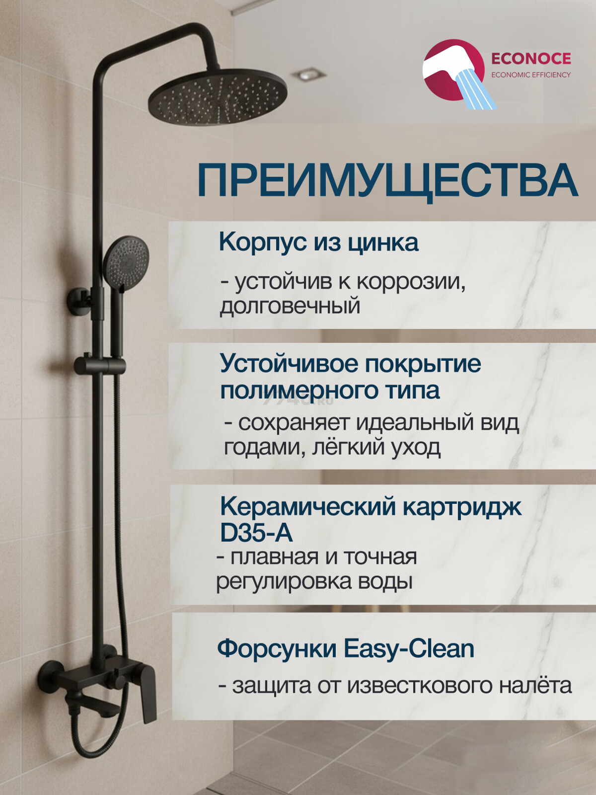 Информация о товаре Душевая стойка ECONOCE серия 800 черный (EC0802BL)