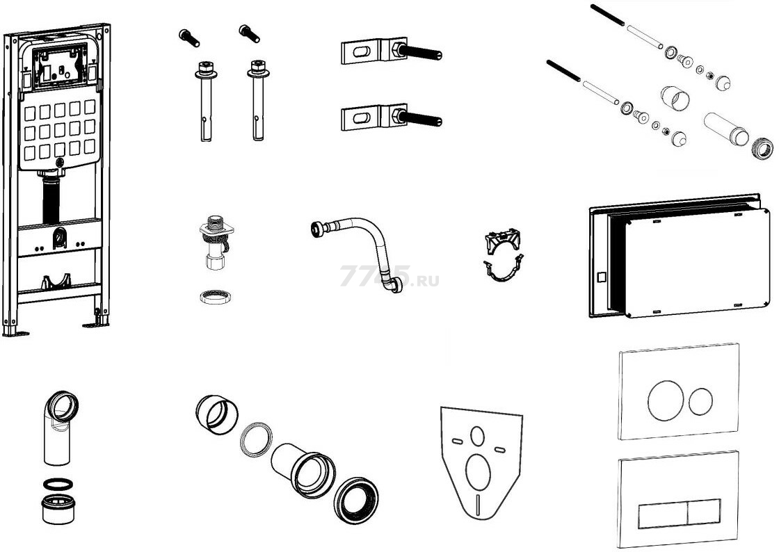 - Металлическая рама с пластмассовым смывным бачком в сборе