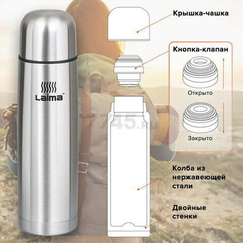 Информация о товаре Термос LAIMA классический с узким горлом 0,5 л (601412)