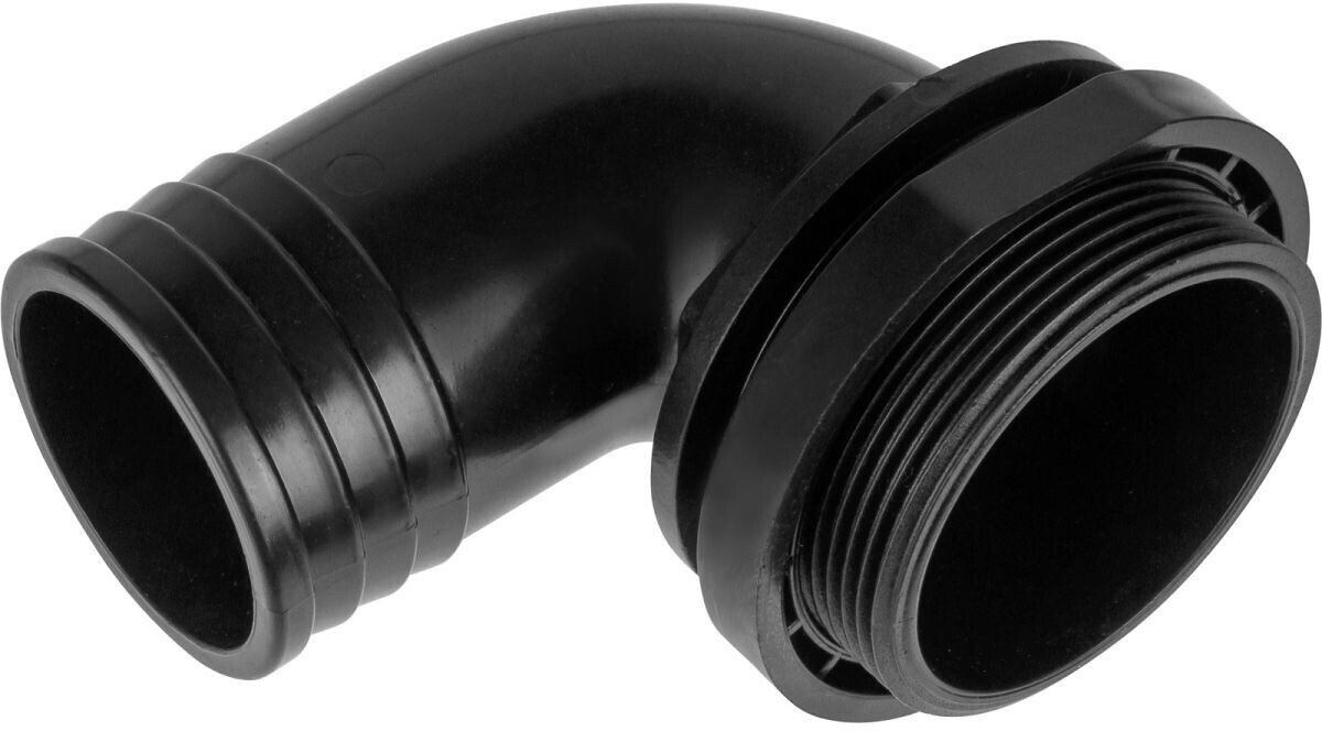 Фитинг обеспечивает прочное и герметичное соединение гибких труб диаметром до 50 мм с резьбовыми элементами. Применяется в водопроводных, насосных и поливных системах, а также в бытовых и промышленных установках, где требуется надежное угловое соединение.