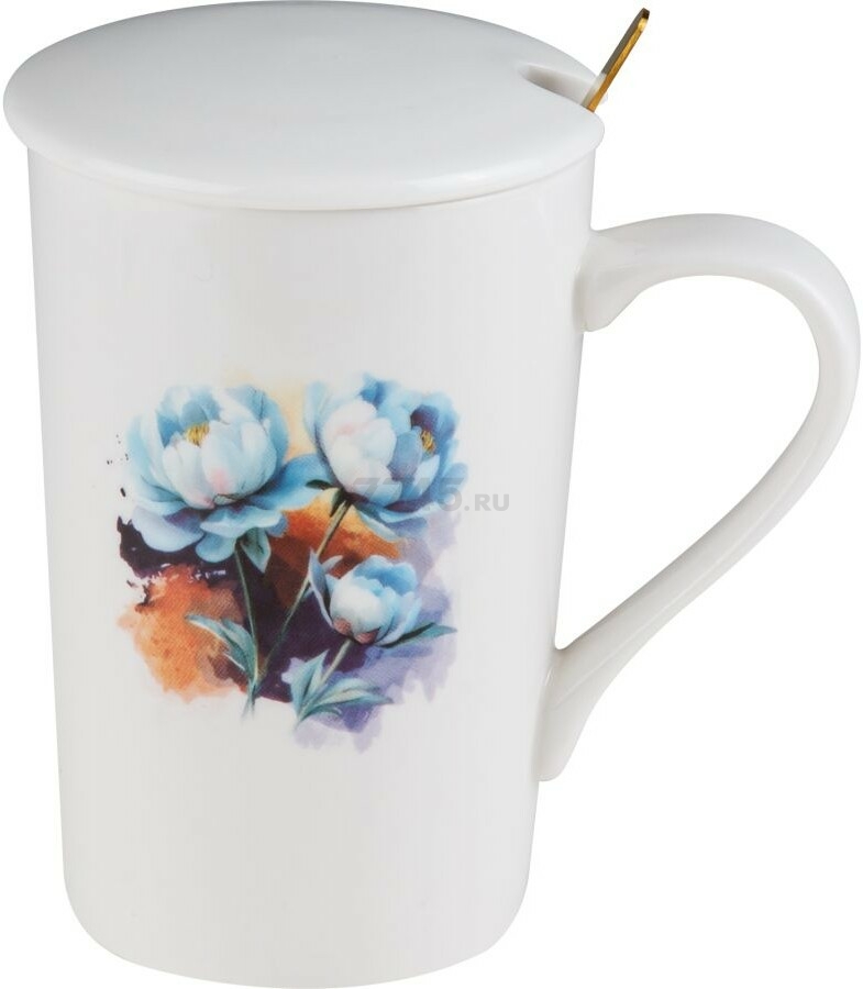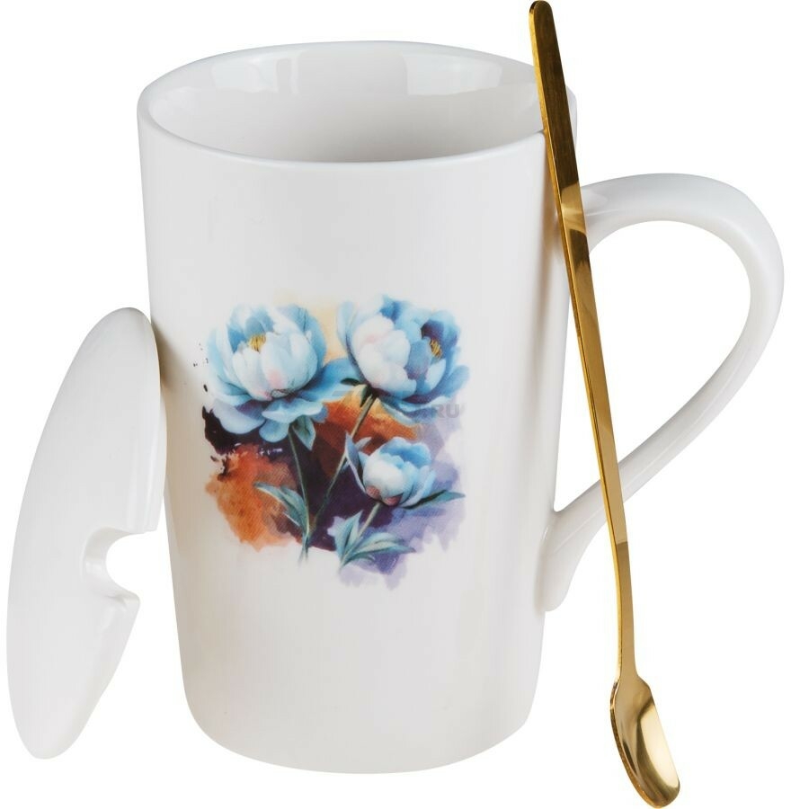 Кружка керамическая с крышкой и ложкой PERFECTO LINEA Peony 350 мл (17-350703)