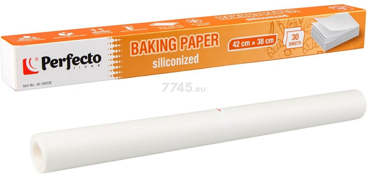 Описание товара Бумага для выпечки пергаментная силиконизированная 42х38 см PERFECTO LINEA 30 листов (45-104238)
