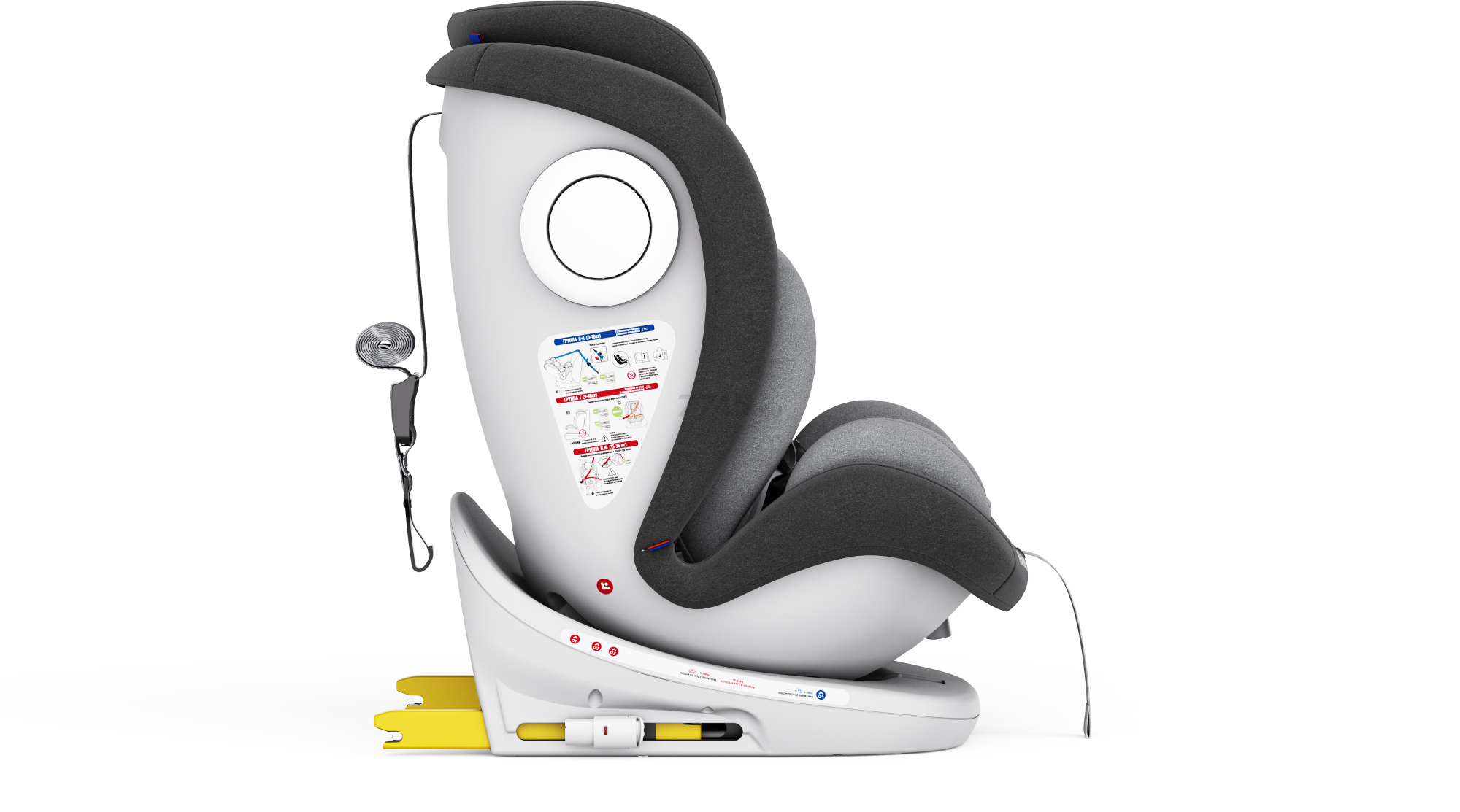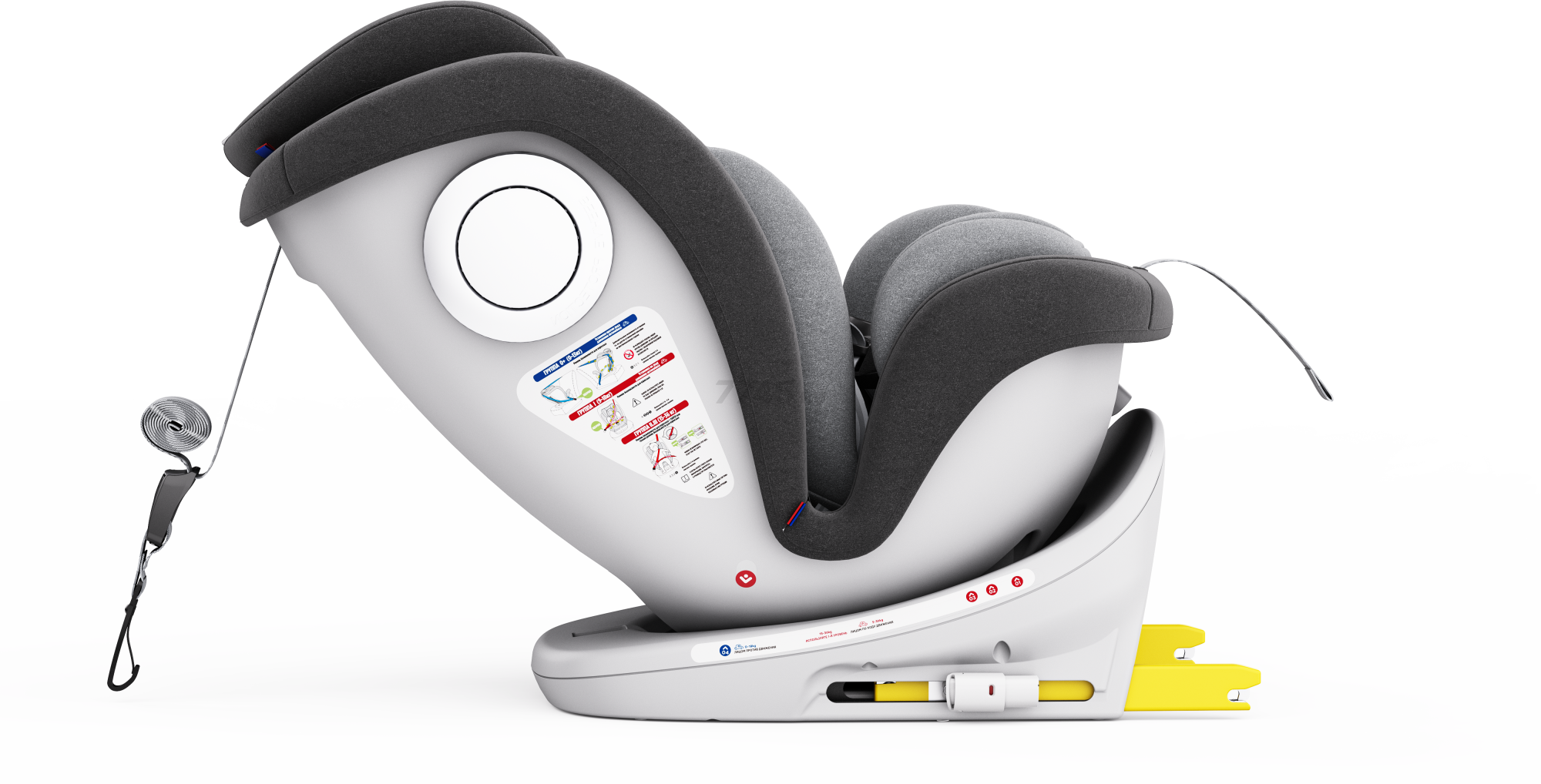 - Автокресло оснащено креплением ISOFIX, которое обеспечивает надежную фиксацию в автомобиле. Дополнительно, имеется якорный ремень Top Tether (0-18 кг), который обеспечивает еще большую стабильность и безопасность.