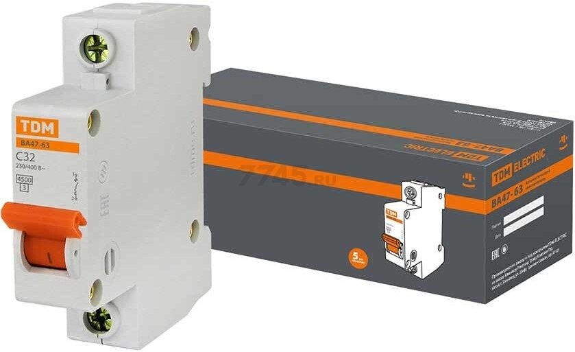 Информация о товаре Автоматический выключатель TDM ВА47-63 1P 32A С 4,5кA (SQ0218-0006)