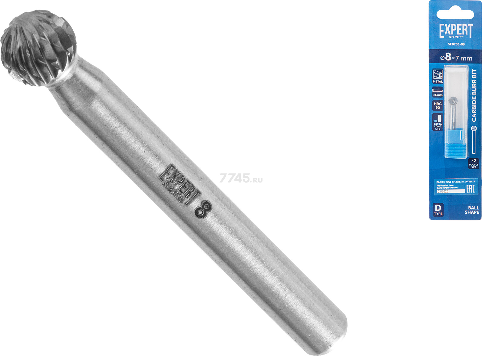 Борфреза твердосплавная сферическая 8x7 мм STARTUL Expert тип D (SE8703-08) - сменный металлорежущий элемент для работы с прямыми шлифовальными машинами (ПШМ).
