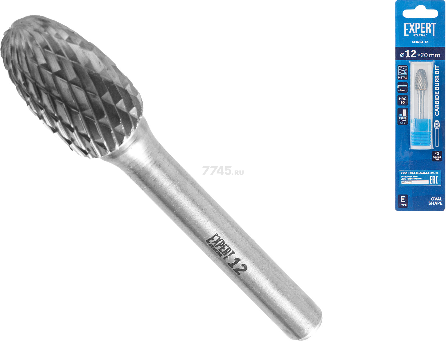 Борфреза твердосплавная овальная 12x20 мм STARTUL Expert тип E (SE8704-12) - сменный металлорежущий элемент для работы с прямыми шлифовальными машинами (ПШМ).