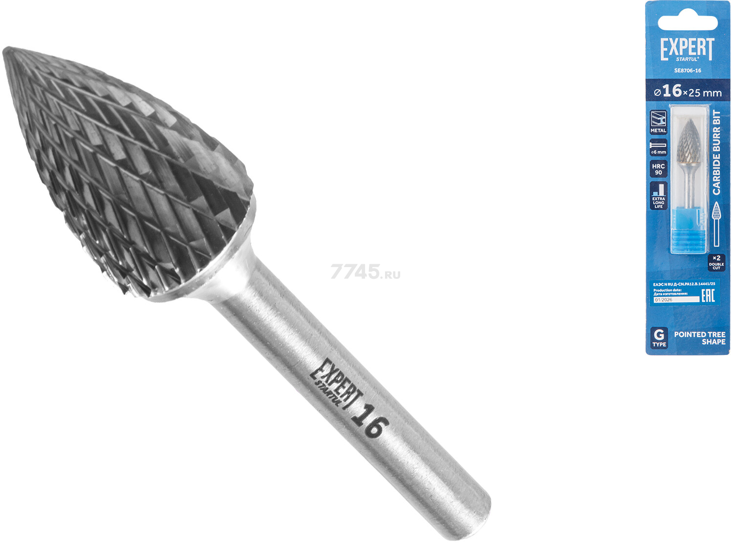 Борфреза твердосплавная параболическая заостренная 16x25 мм STARTUL Expert тип G (SE8706-16) - сменный металлорежущий элемент для работы с прямыми шлифовальными машинами (ПШМ).