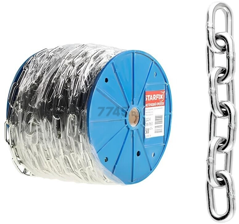 Описание товара Цепь сварная короткозвенная М5 нержавеющая сталь А2 DIN 766 STARFIX бухта 25м (SMP-75648-25)