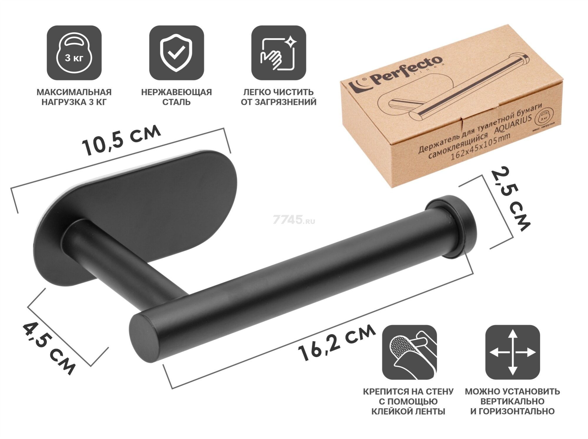 Держатель для туалетной бумаги PERFECTO LINEA Aquarius (35-031001) выполнен из нержавеющей стали, обеспечивающая надежную защиту от влаги и долгий срок службы. Благодаря минималистичному дизайну превосходно вписывается в любой интерьер. Не требует дополнительного ухода, легко очистить от загрязнений. Держатель для туалетной бумаги возможно установить, как горизонтально, так и вертикально. Установка держателя бумаги происходит без сверления и забивания, а при помощи клейкой ленты. Максимальная нагрузка 3 кг.