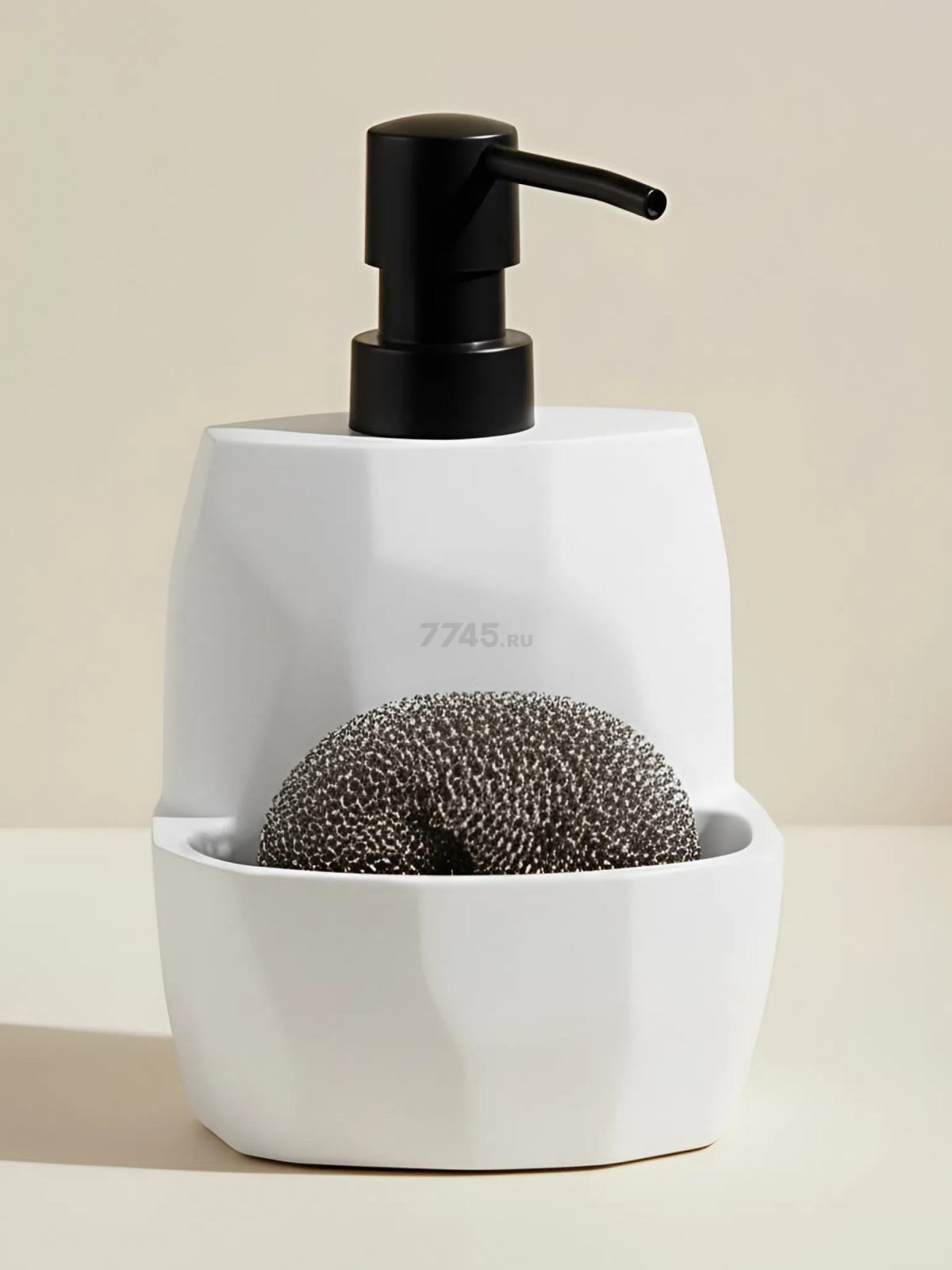 Дозатор для жидкого мыла с подставкой для губки PERFECTO LINEA Symphony белый (35-103001)