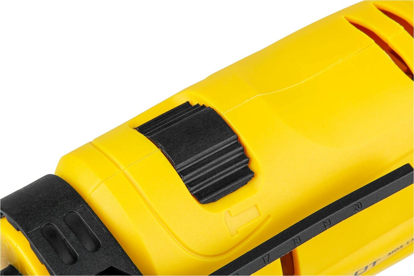 Дрель ударная MOLOT MDS 1309-1 (0329092) имеет эргономичный дизайн, дополнительная рукоятка обеспечивает надежный захват. Оснащена металлическим сверлильным патроном, дополнительно имеется регулировка скорости, ограничитель глубины, реверс и блокировка кнопки включения.