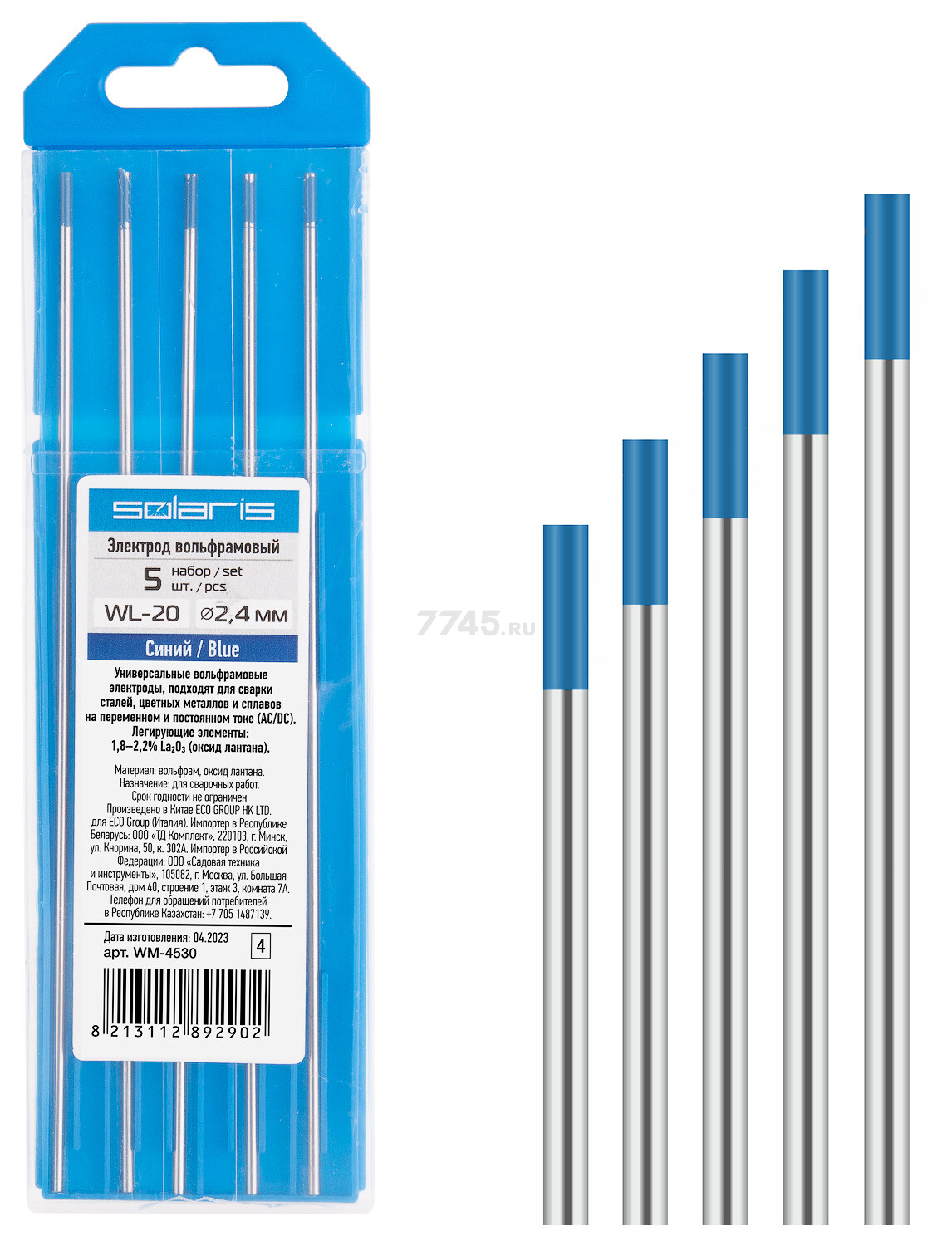 Электрод вольфрамовый для TIG сварки 2,4 мм SOLARIS WL-20 синий 5 штук (WM-4530)