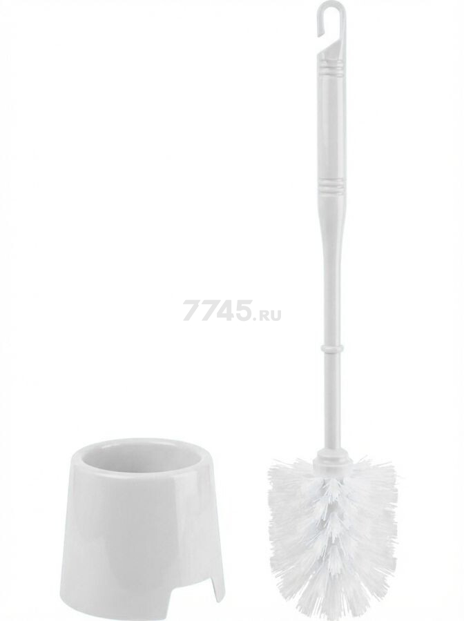 Изделие изготовлено из прочного полипропилена, устойчивого к влаге и износу. Размер ершика с подставкой составляет 11×38 см, что обеспечивает удобство хранения и использования в ежедневной уборке.