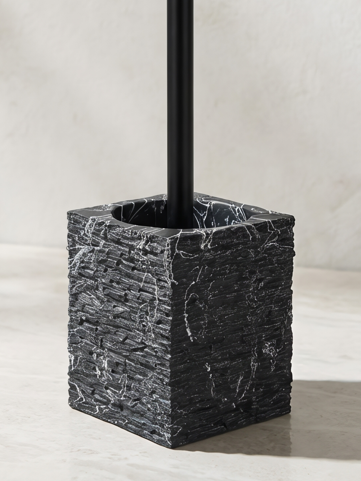 Ершик для унитаза PERFECTO LINEA StoneWave черный (35-130804) — стильный и практичный аксессуар для ванной комнаты. Изготовлен из полирезины под натуральный камень и нержавеющей стали. Благодаря композитному материалу изделие обладает низкой теплопроводностью, приятное на ощупь, устойчиво к влаге и высоким температурам. Размер: 9,9×9,9×37,3 см.