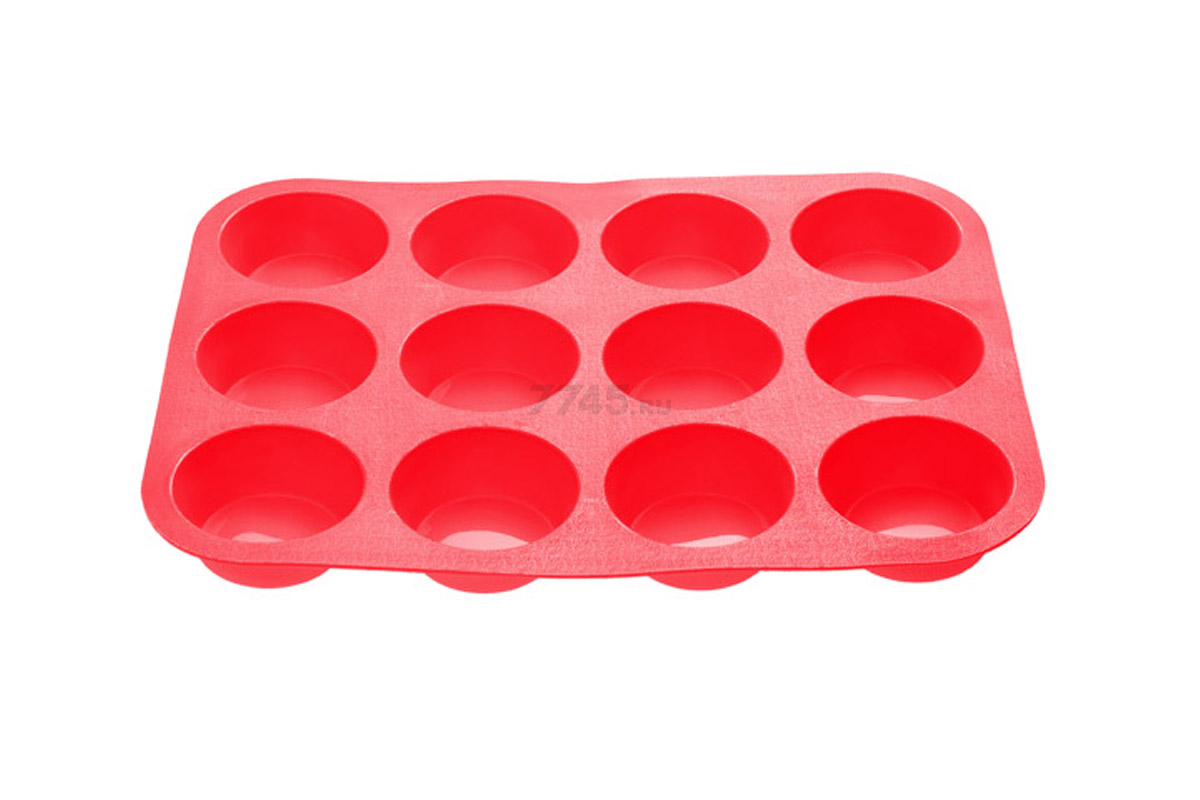 Информация о товаре Форма для выпечки силиконовая прямоугольная на 12 кексов 33х25х3 см PERFECTO LINEA красная (20-018715)