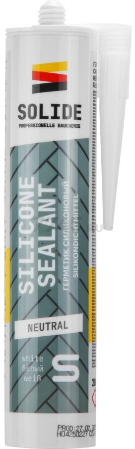 Описание товара Герметик силиконовый SOLIDE нейтральный белый 280 мл (SL-27608-1)