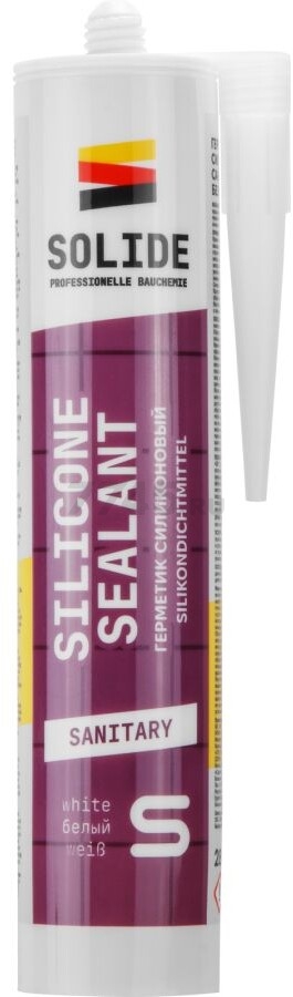 Описание товара Герметик силиконовый SOLIDE санитарный белый 280 мл (SL-65302-1)