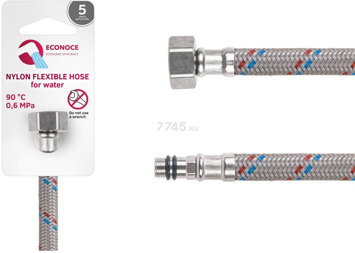 Описание товара Гибкая подводка для воды nylon иголка М10 короткая - гайка 1/2" ECONOCE 150 см (EC033150)