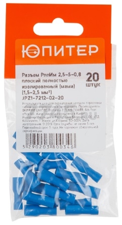 Описание товара Разъем мама ЮПИТЕР РппИм 2,5-5-0,8 2,5 мм2 20 штук (JPZ1-7212-02-20)