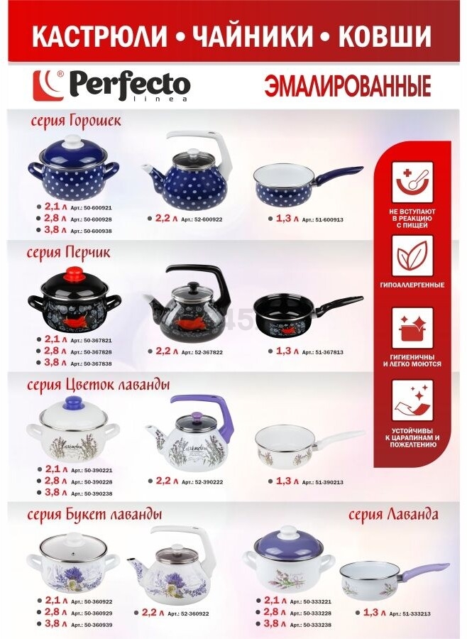 Правила безопасного и эффективного использования эмалированной посуды: перед первым использованием рекомендуется вымыть теплой водой с жидким моющим средством; использовать по назначению; н ставить пустую посуду на источники тепла; диаметр источника тепла должен быть равным либо меньшим диаметру дна изделия; при перегревании посуды, не охлаждать холодной водой, дать остыть до комнатной температуры; не допускать замерзания жидкости в изделии; оберегать от сильных ударов и падений; не использовать в духовом шкафу изделия с бакелитовыми ручками и не допускать контакт бакелитовых частей с источником тепла; используйте специальные кухонные прихватки и рукавицы во избежание ожогов; не предназначена для использования в микроволновых печах; запрещается использовать изделие при наличии скола эмали на внутренней поверхности; для очистки изделий не используйте жесткие губки и абразивные моющие средства; для удаления накипи/осадка используйте специальные средства от накипи.