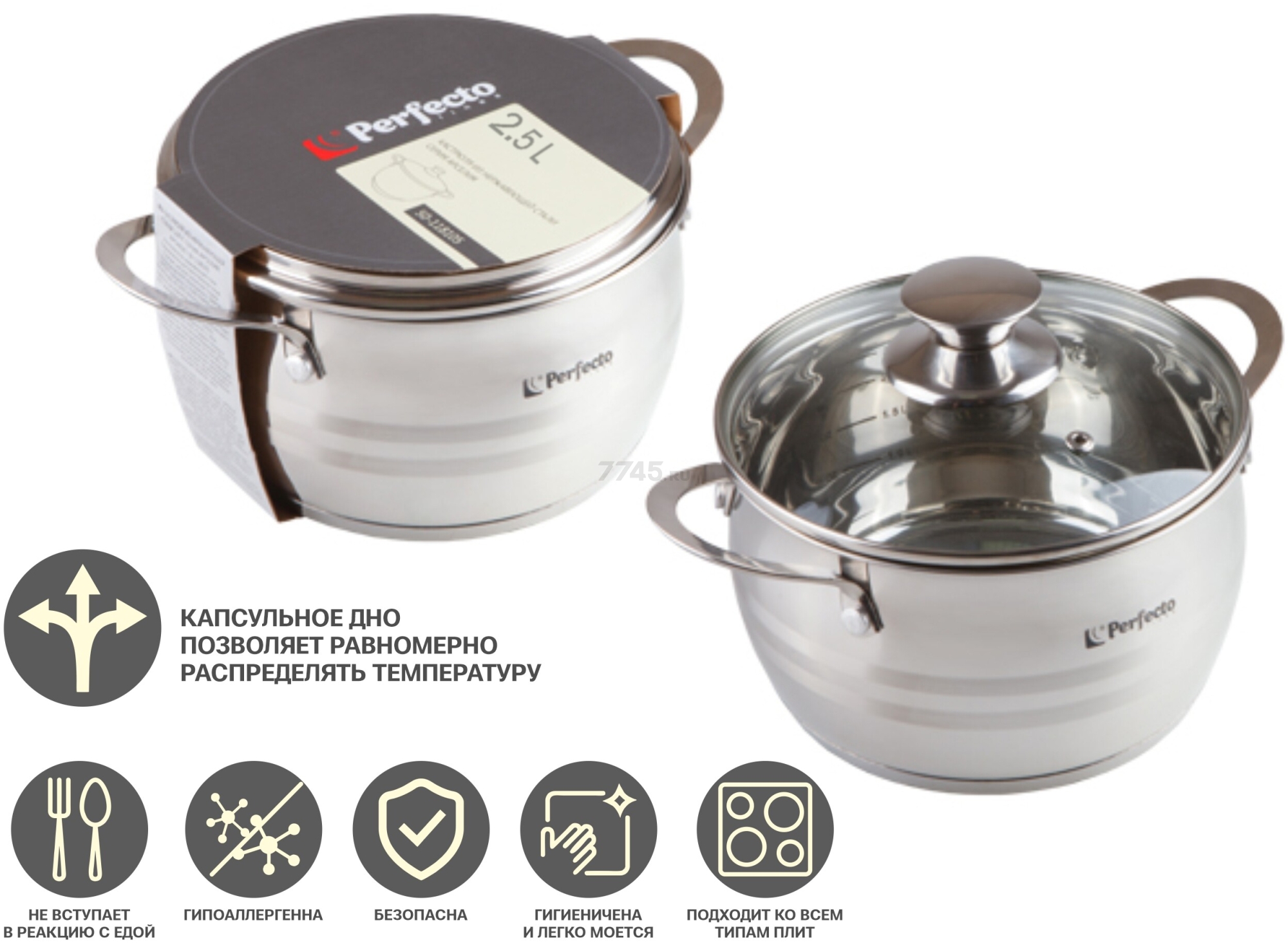 Описание товара Кастрюля из нержавеющей стали 2,5 л PERFECTO LINEA Arcelia (50-118135)