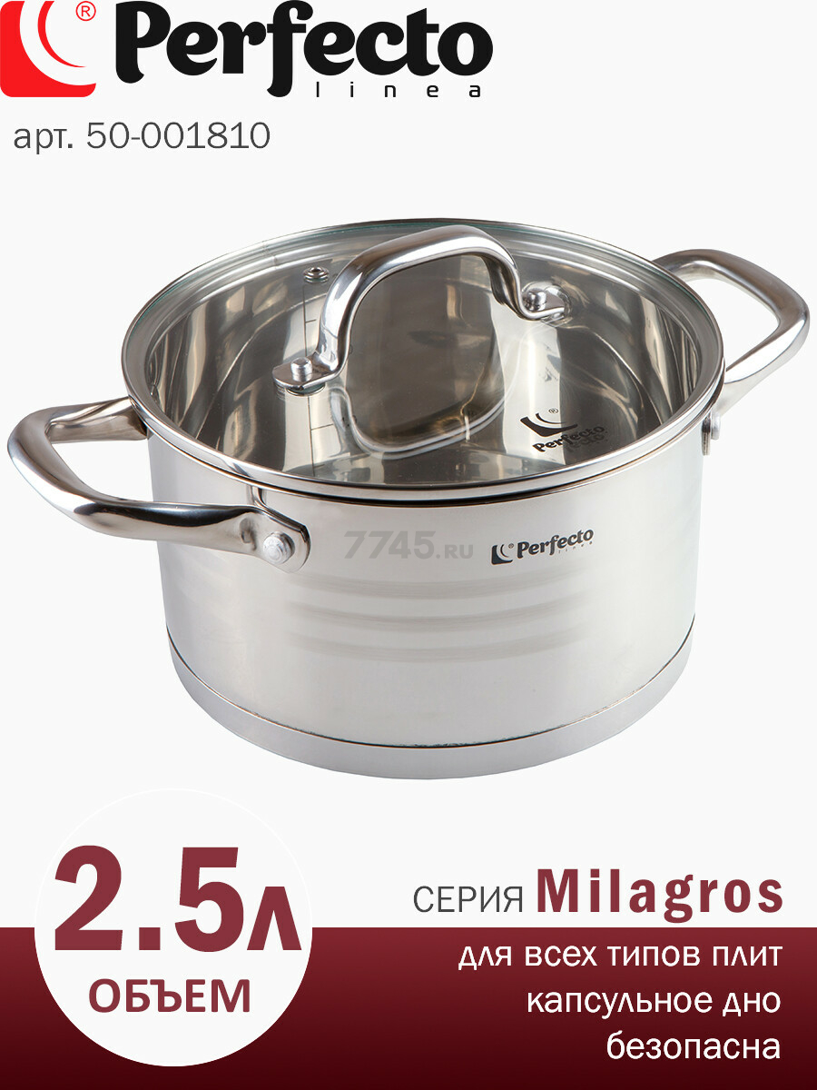 Описание товара Кастрюля из нержавеющей стали 2,5 л PERFECTO LINEA Milagros (50-001810)