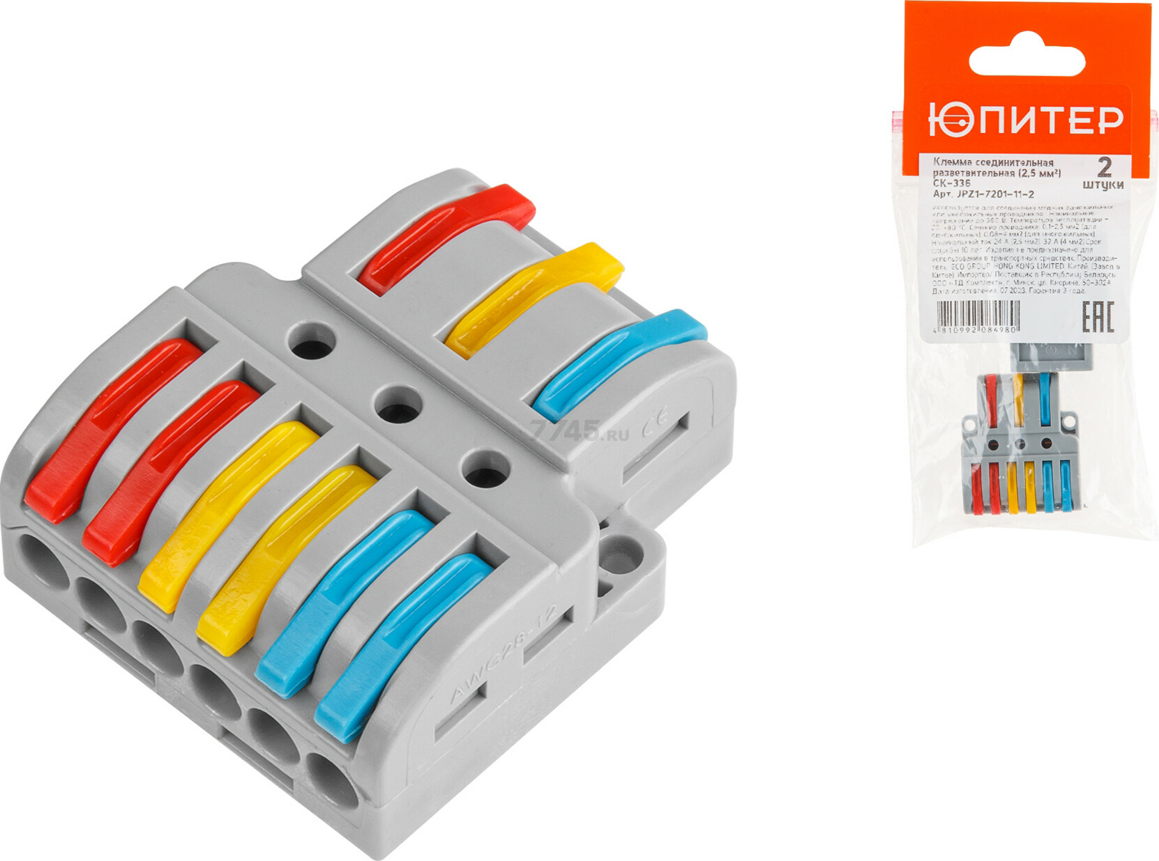 Описание товара Клемма разветвительная ЮПИТЕР СК-336 2.5 мм2 2 штуки (JPZ1-7201-11-2)