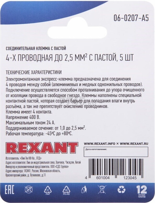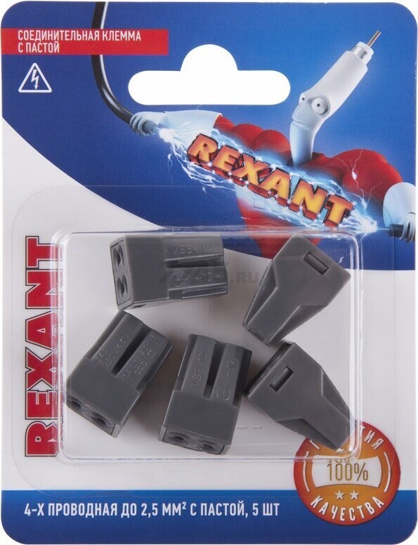 Описание товара Клемма REXANT СМК 773-304 с пастой 4 контактные группы 5 штук серая (06-0207-A5)