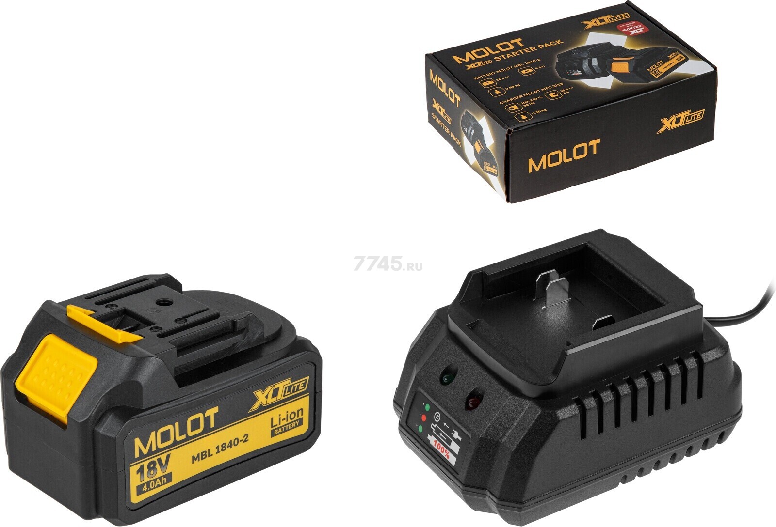 Информация о товаре Комплект аккумулятор 18В 4 Ач и зарядное устройство MOLOT XLT Lite (2329090)
