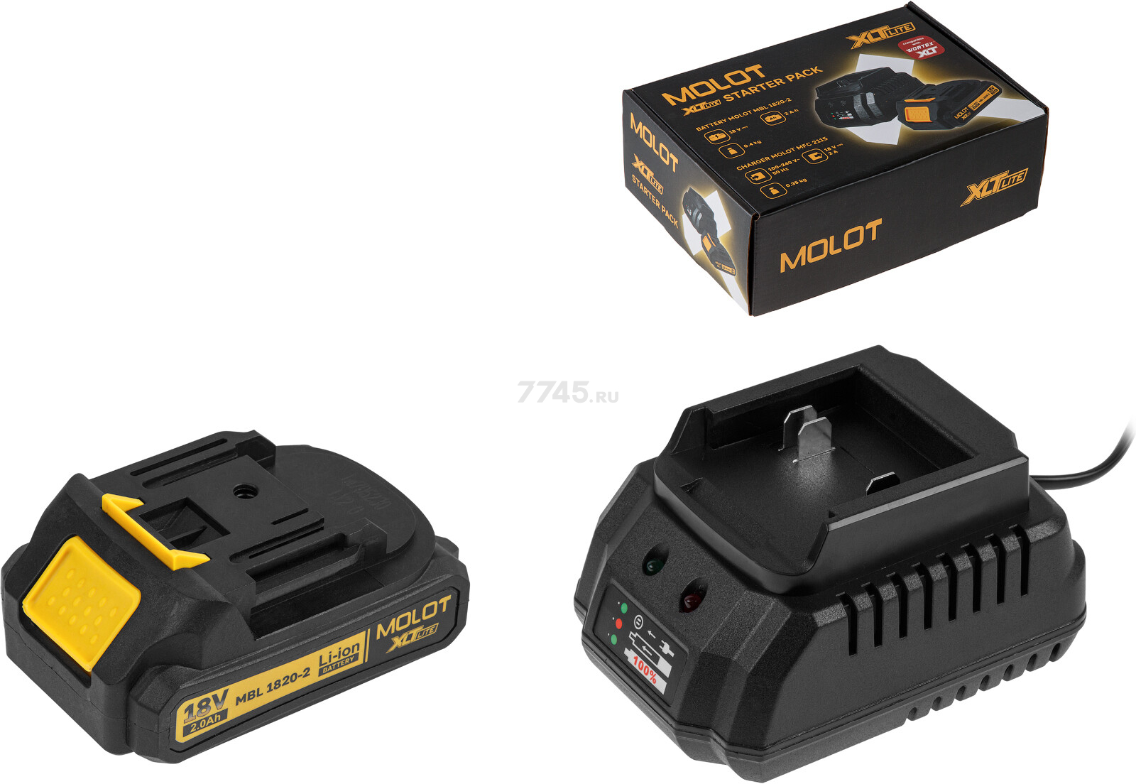 Комплект аккумулятор 18В 2 Ач и зарядное устройство MOLOT XLT Lite (2329089)