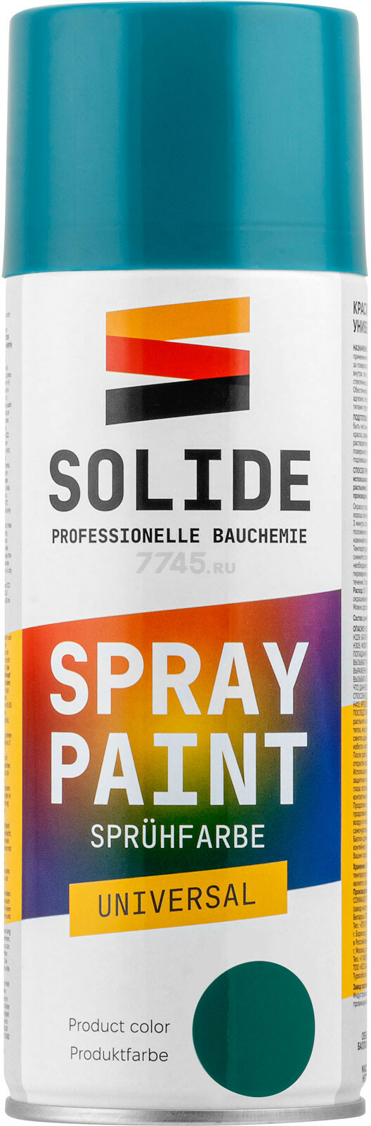 Информация о товаре Краска-эмаль аэрозольная универсальная зеленый SOLIDE 400 мл (SL-27523-1)