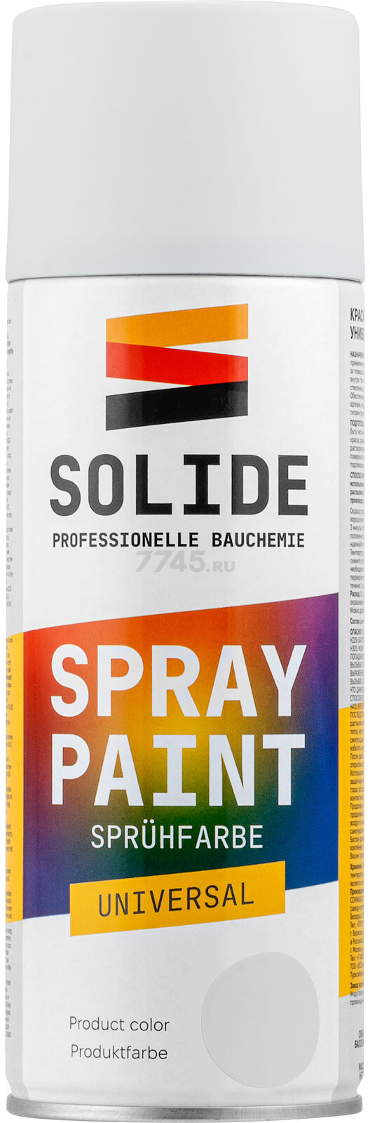 Описание товара Краска-эмаль аэрозольная универсальная белый матовый SOLIDE 400 мл (SL-27515-1)