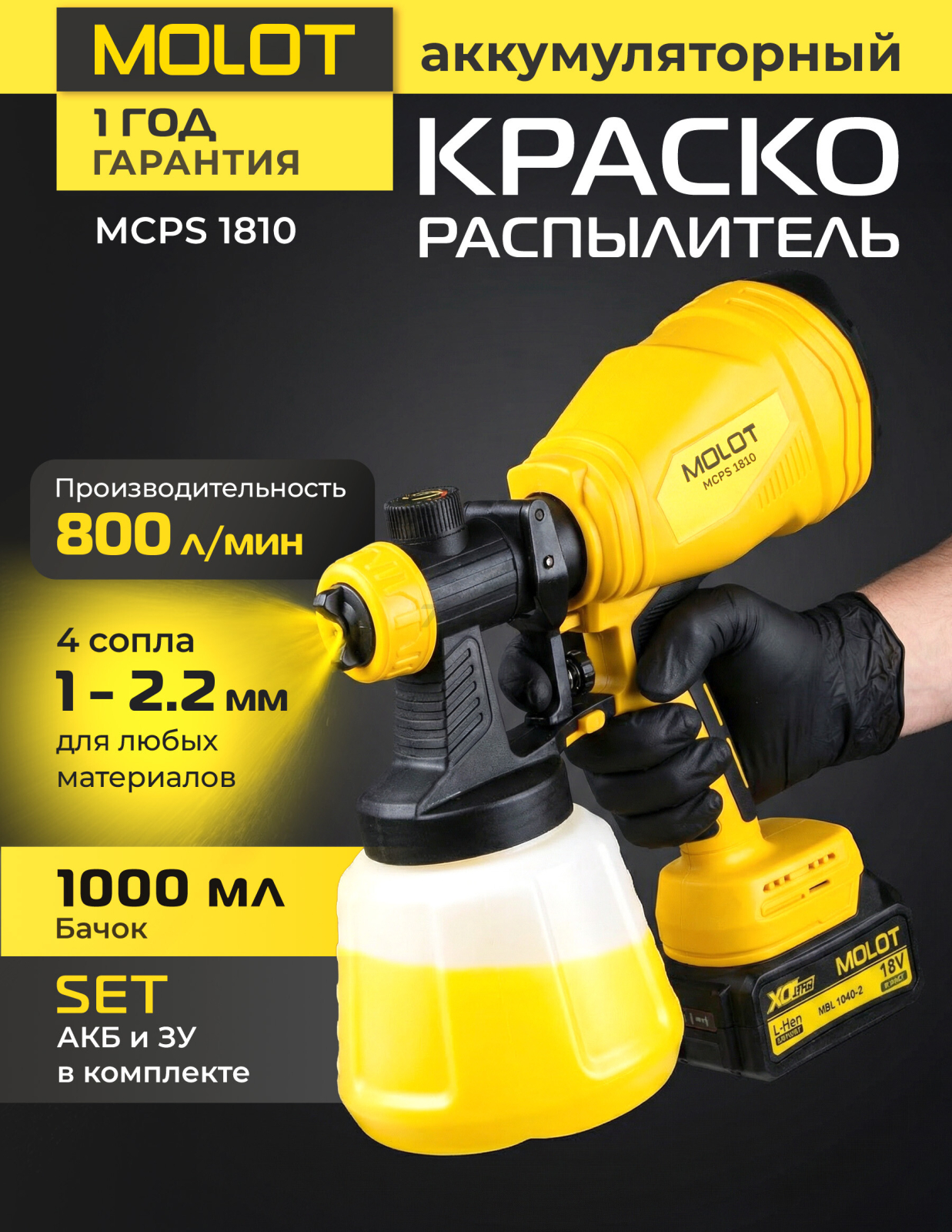 - Краскораспылитель аккумуляторный MOLOT MCPS 1810 XLT Lite