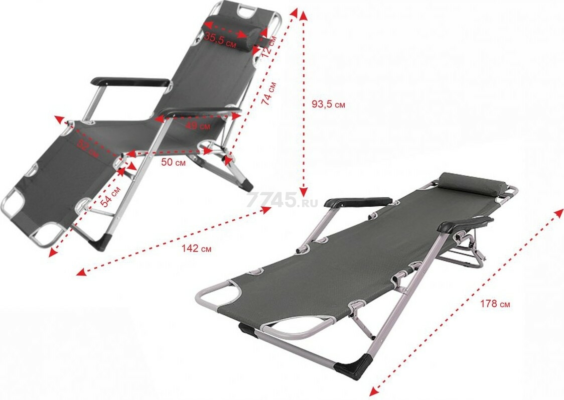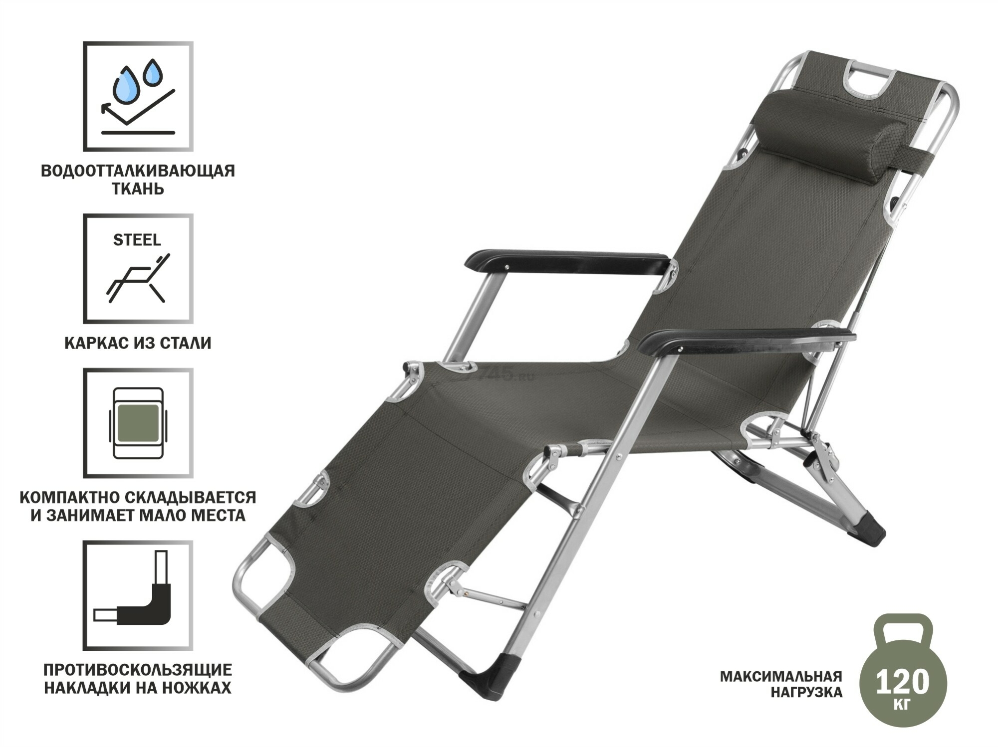 Описание товара Кресло-шезлонг складное ARIZONE серое (42-178602)