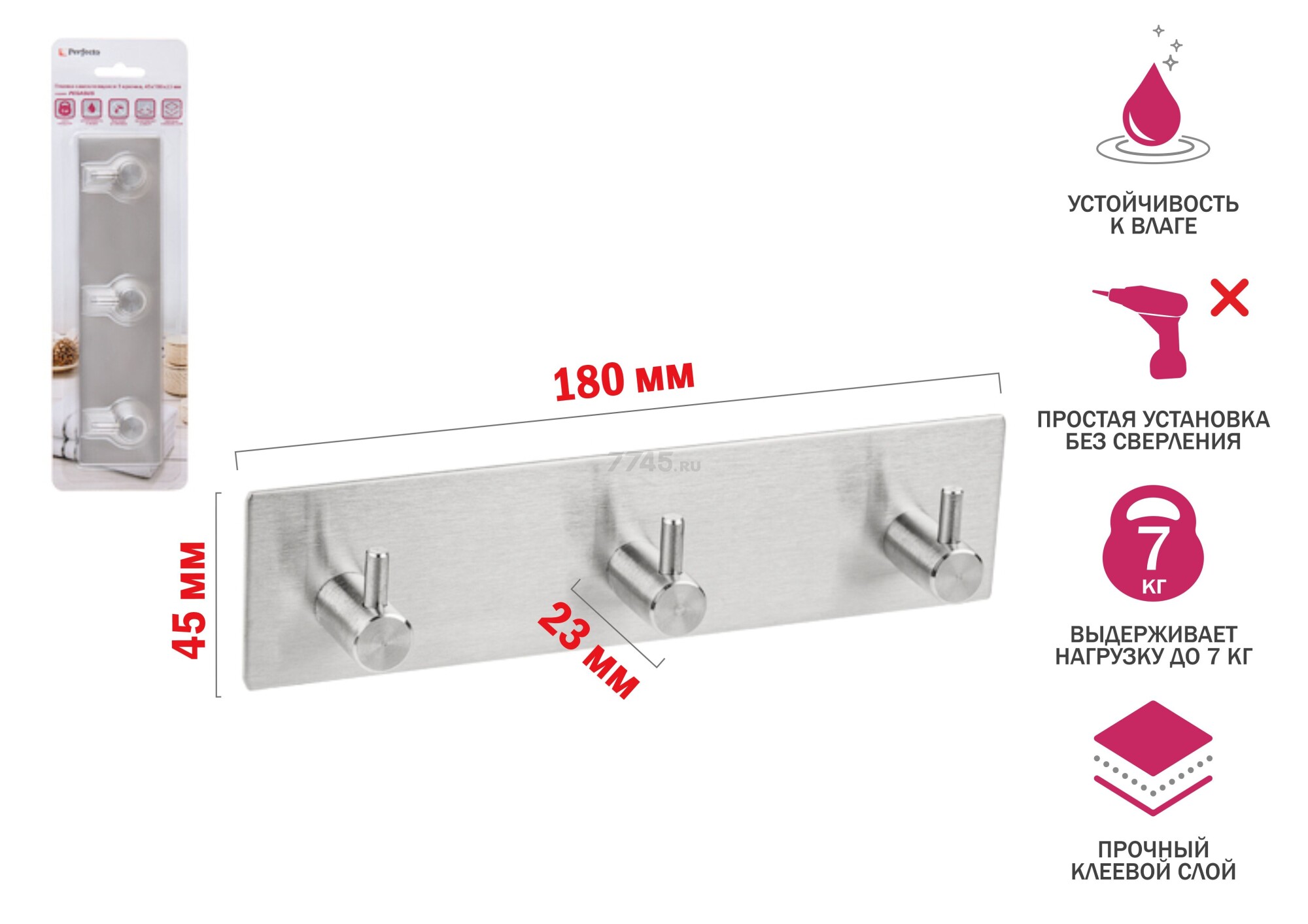 Информация о товаре Крючок для ванной тройной PERFECTO LINEA Pegasus (35-006000)