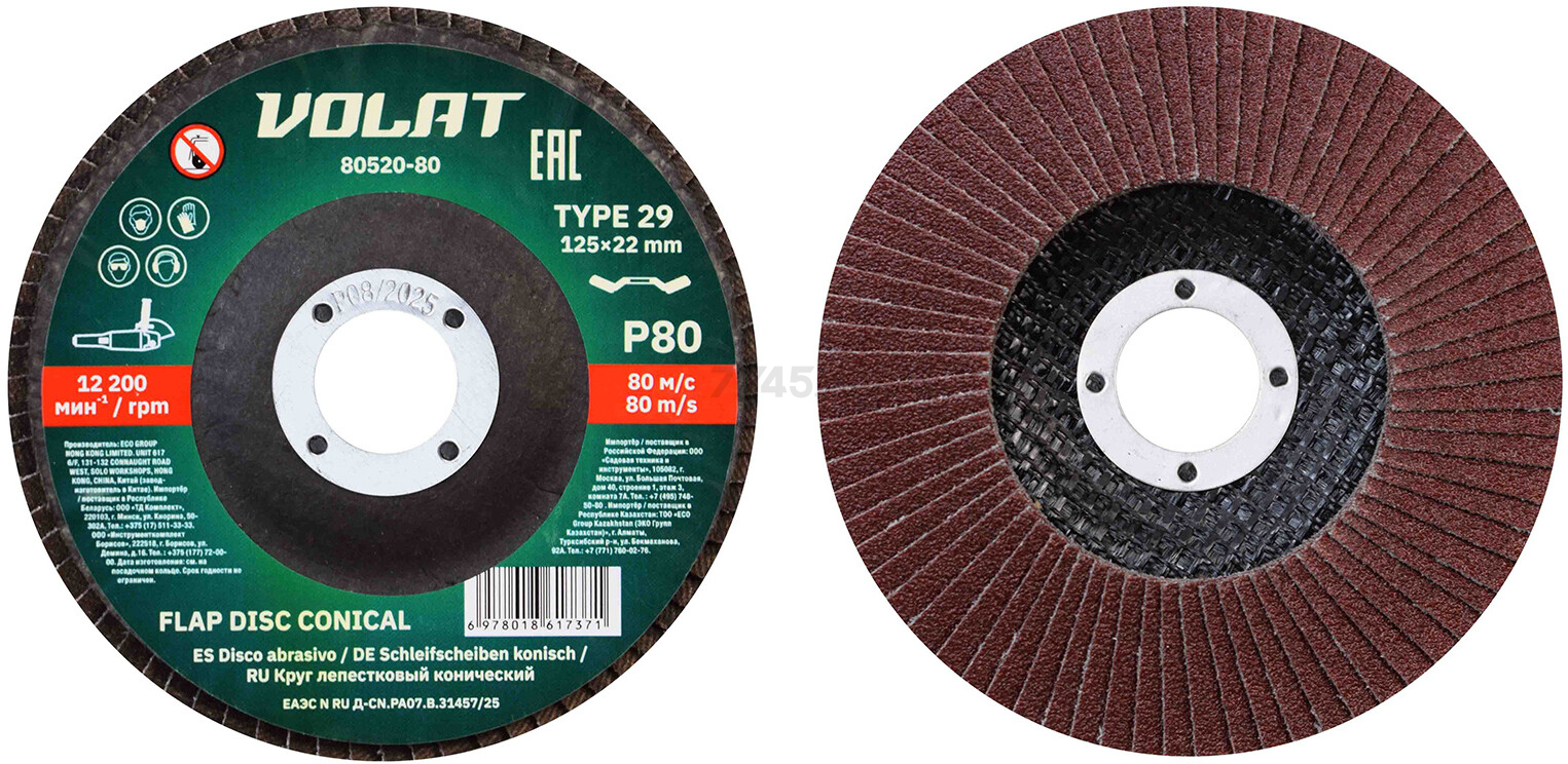 Описание товара Круг лепестковый 125х22 мм P80 конический ВОЛАТ (80520-80)